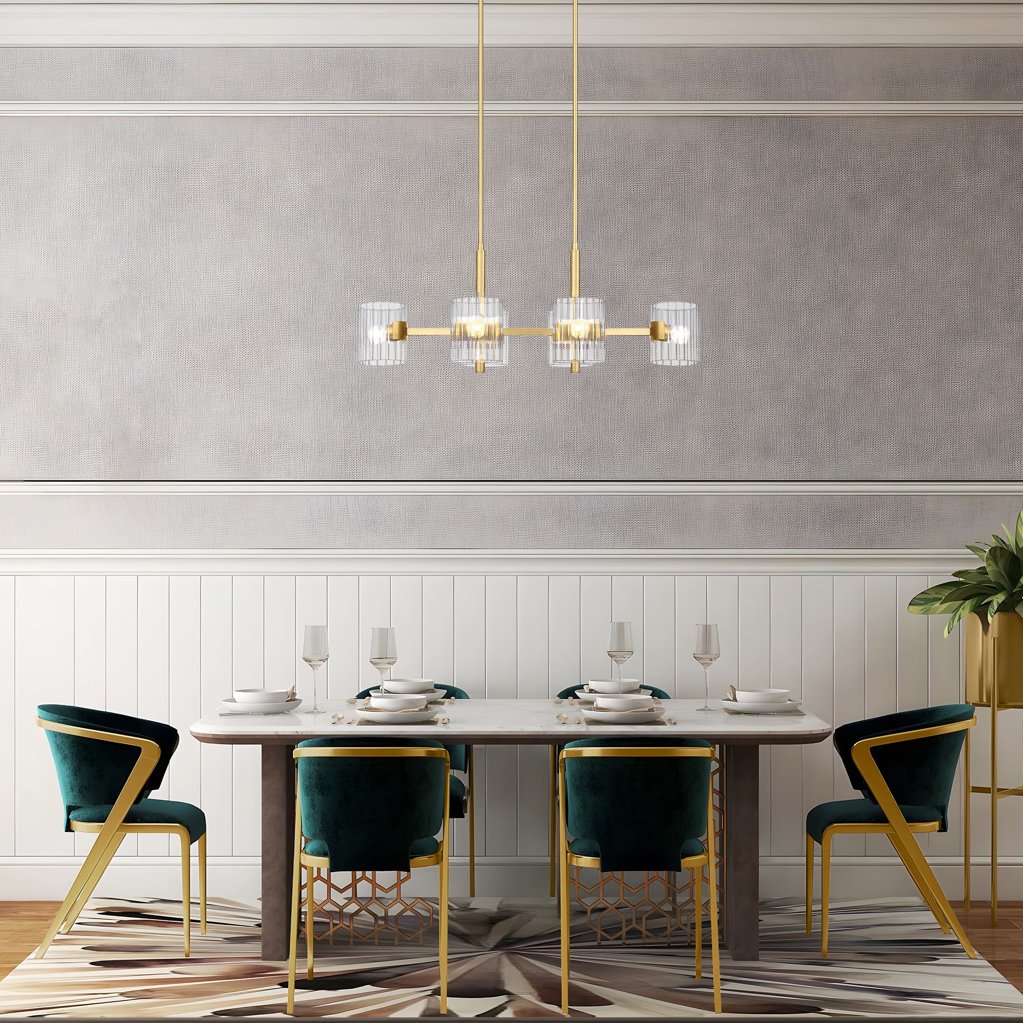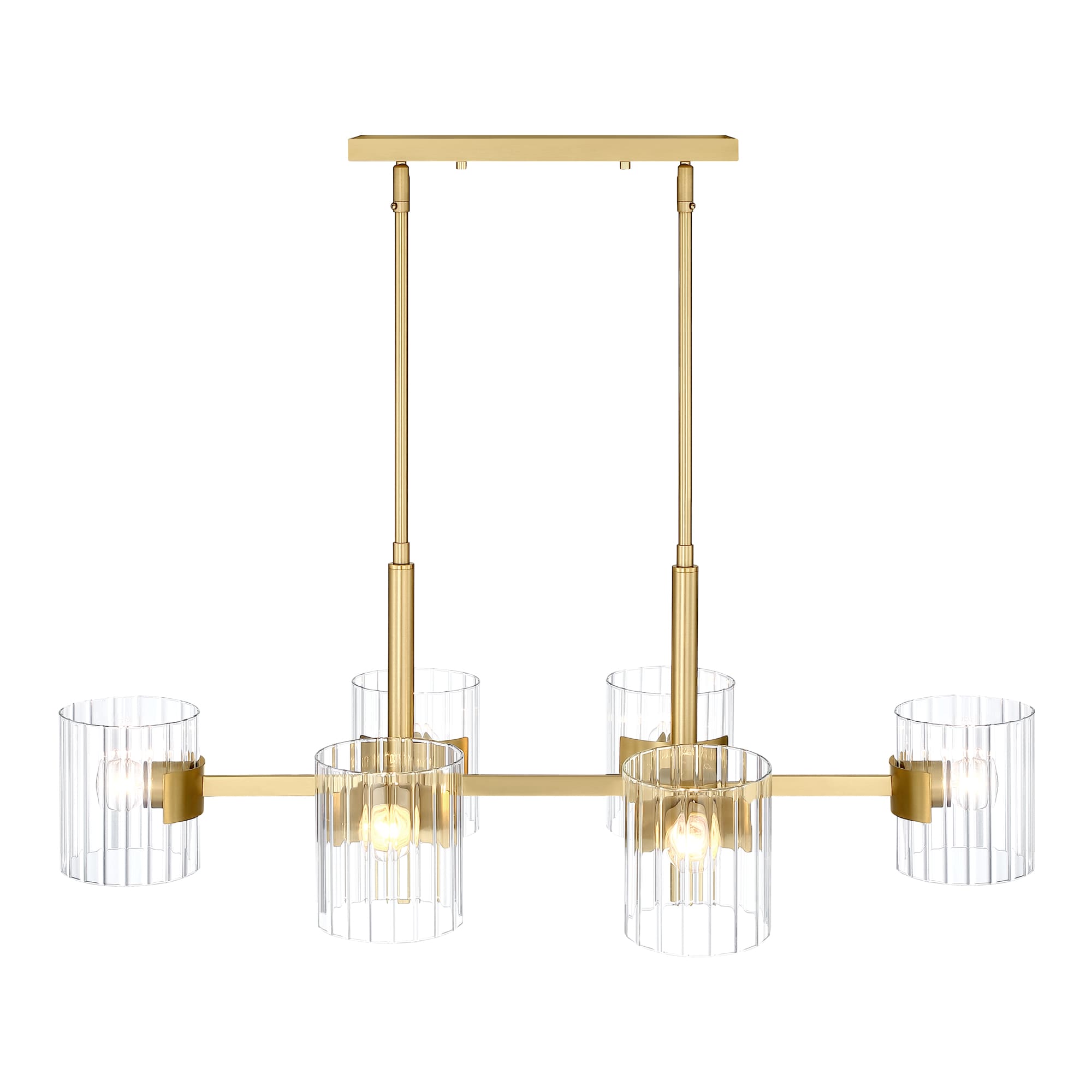 • Transitional island in Brushed Gold with Ribbed Glass shades