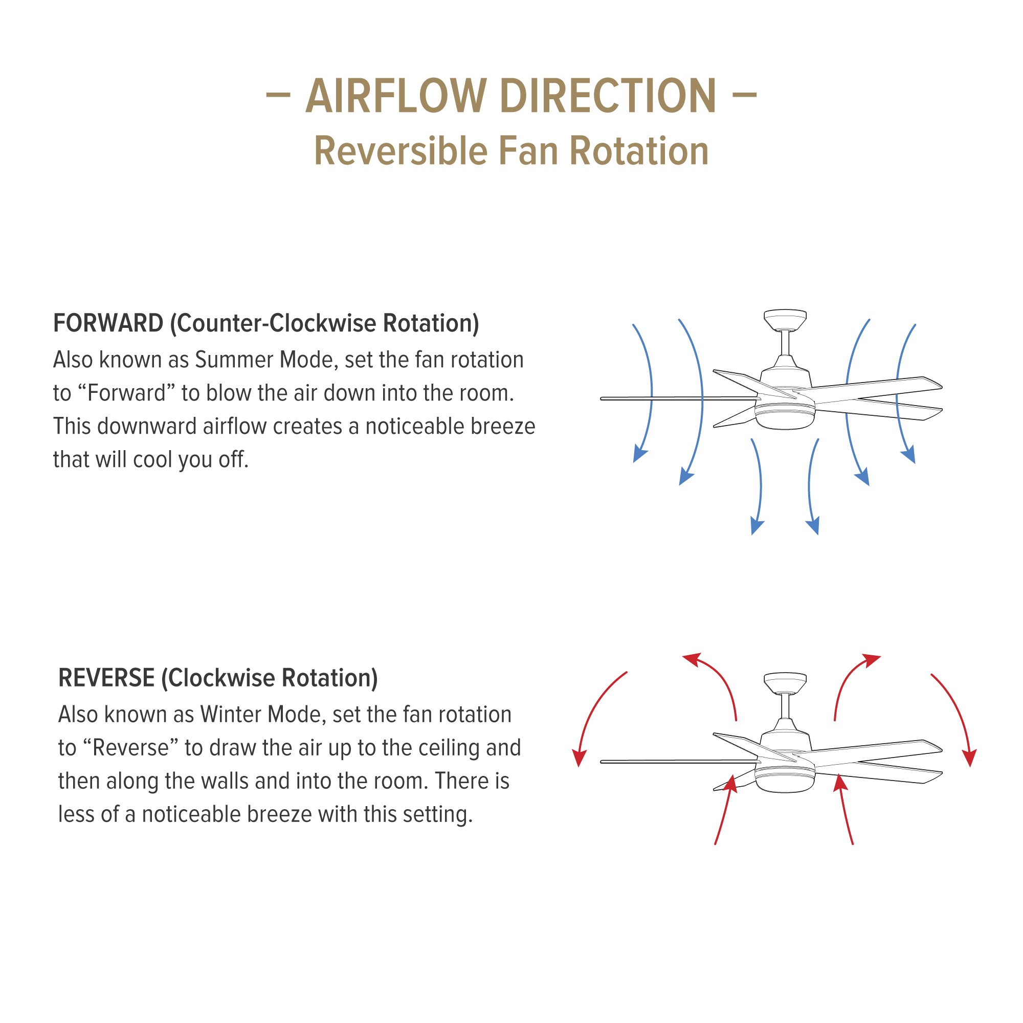 • Ceiling fan features reversible plywood blades – Silver on one side and Pearl Gray on the other