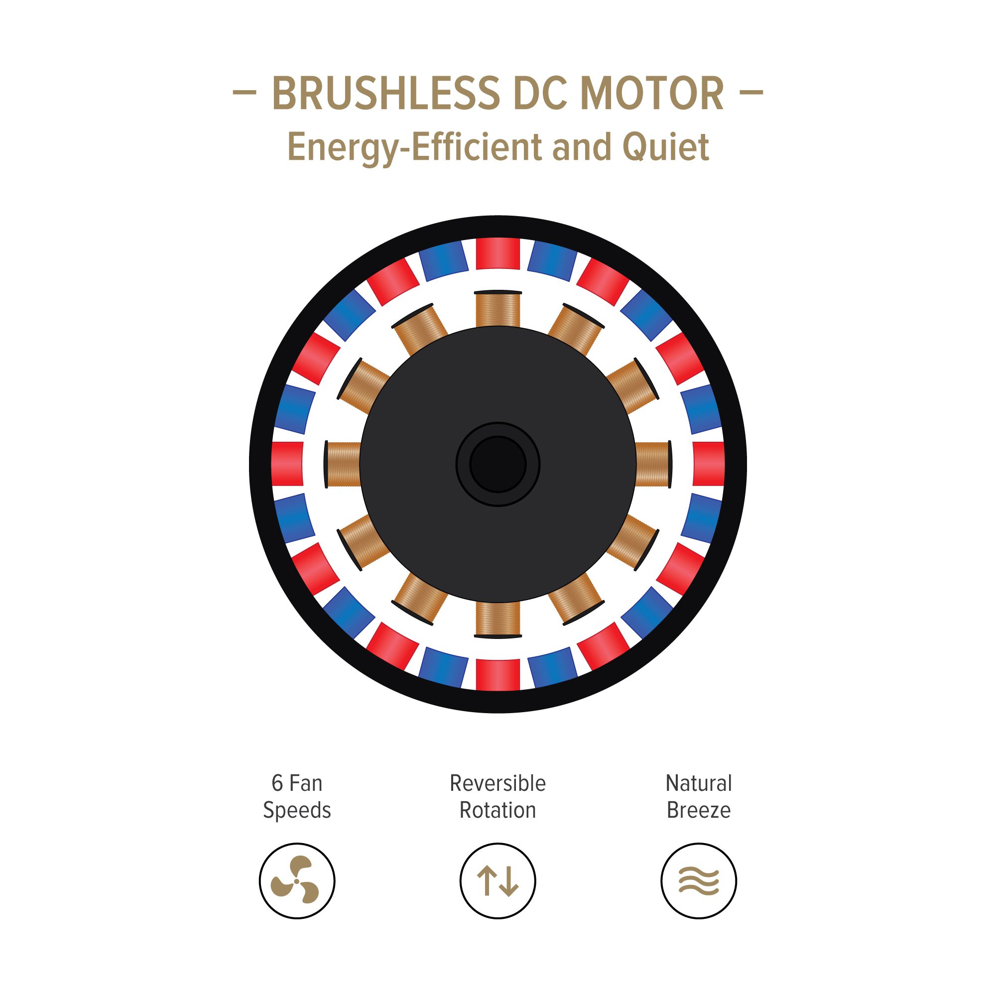 • Powerful 6-speed, 5-blade DC motor has a max CFM of 4,233