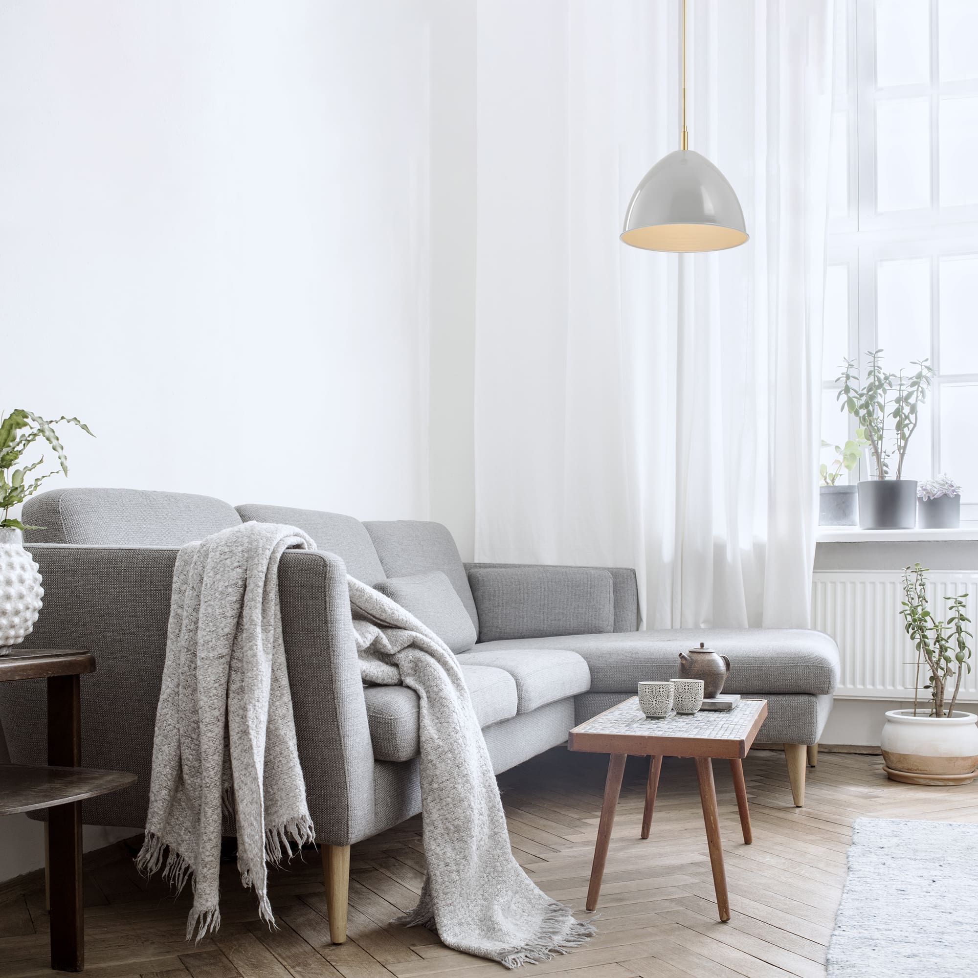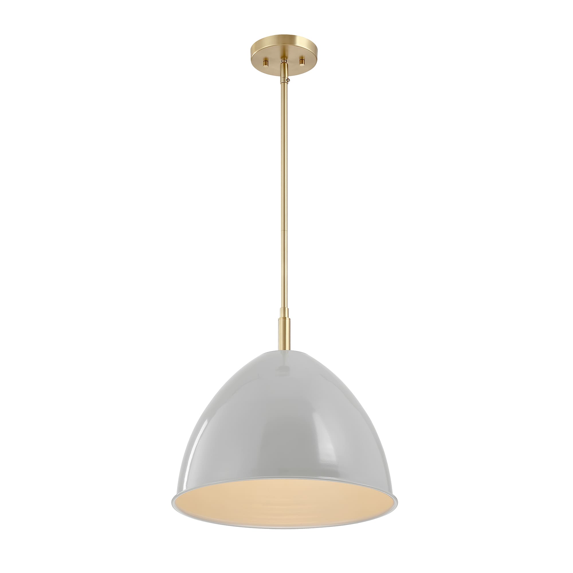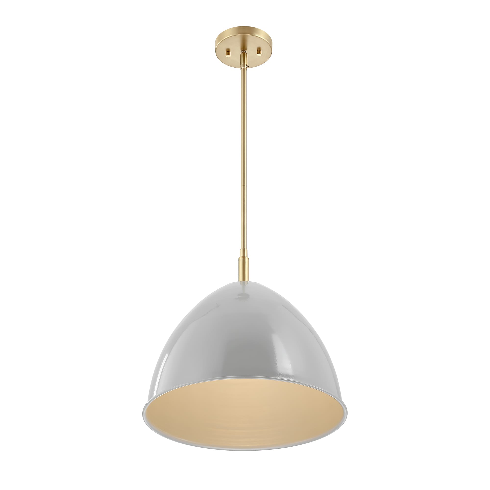 • Modern pendant in Brushed Gold with a Grey Sky metal shade