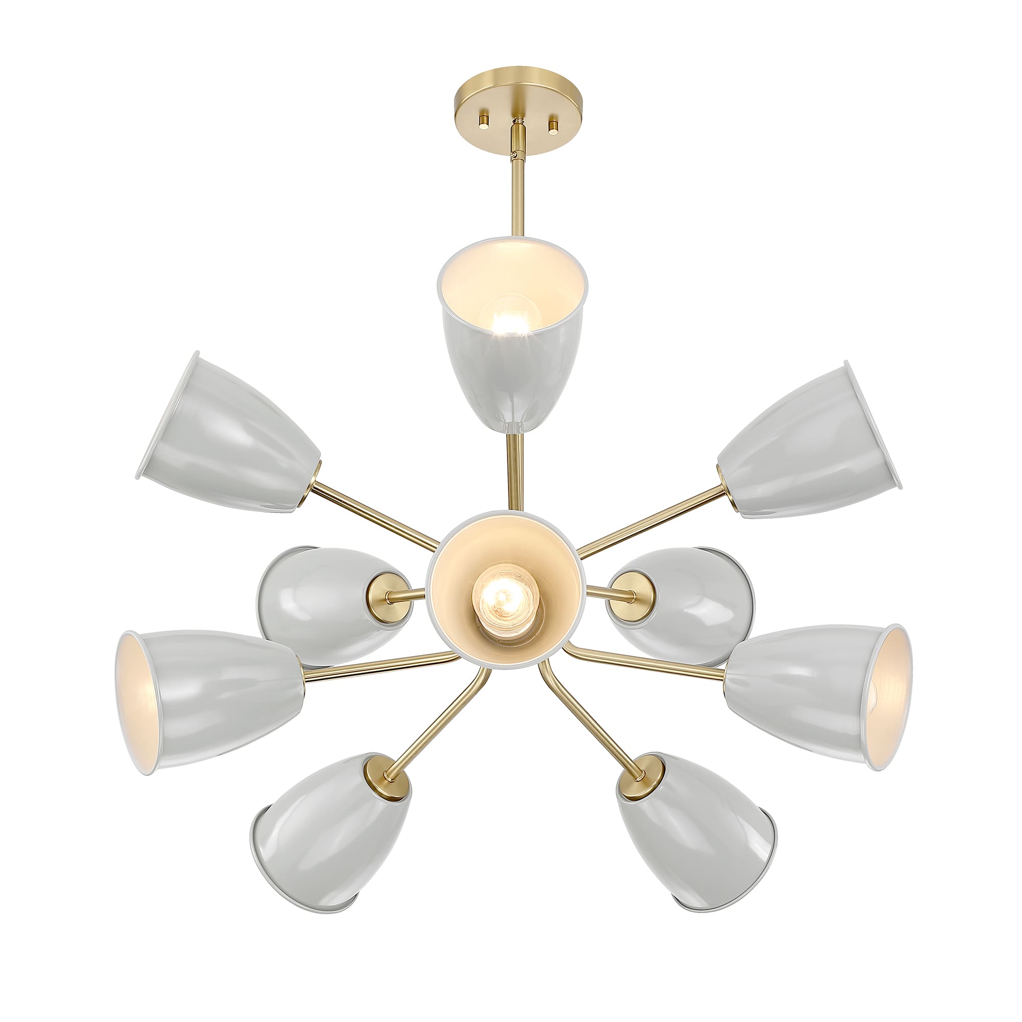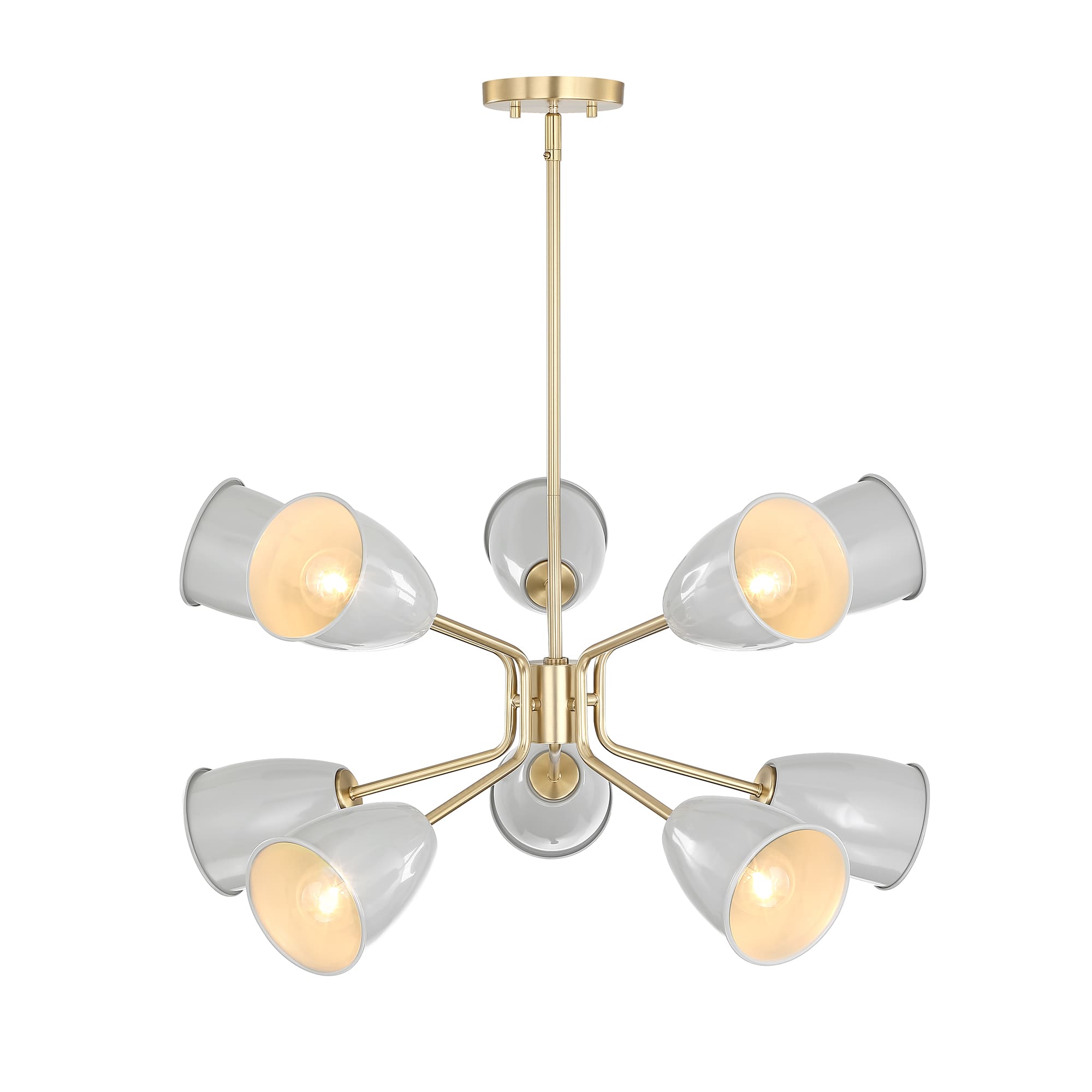 • Modern chandelier in Brushed Gold with a Grey Sky metal shade