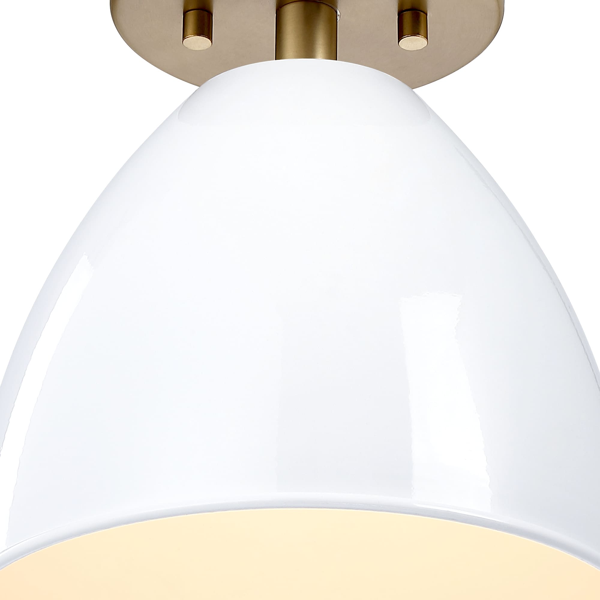 • Modern semi-flush in Brushed Gold with an Ice Mist metal shade