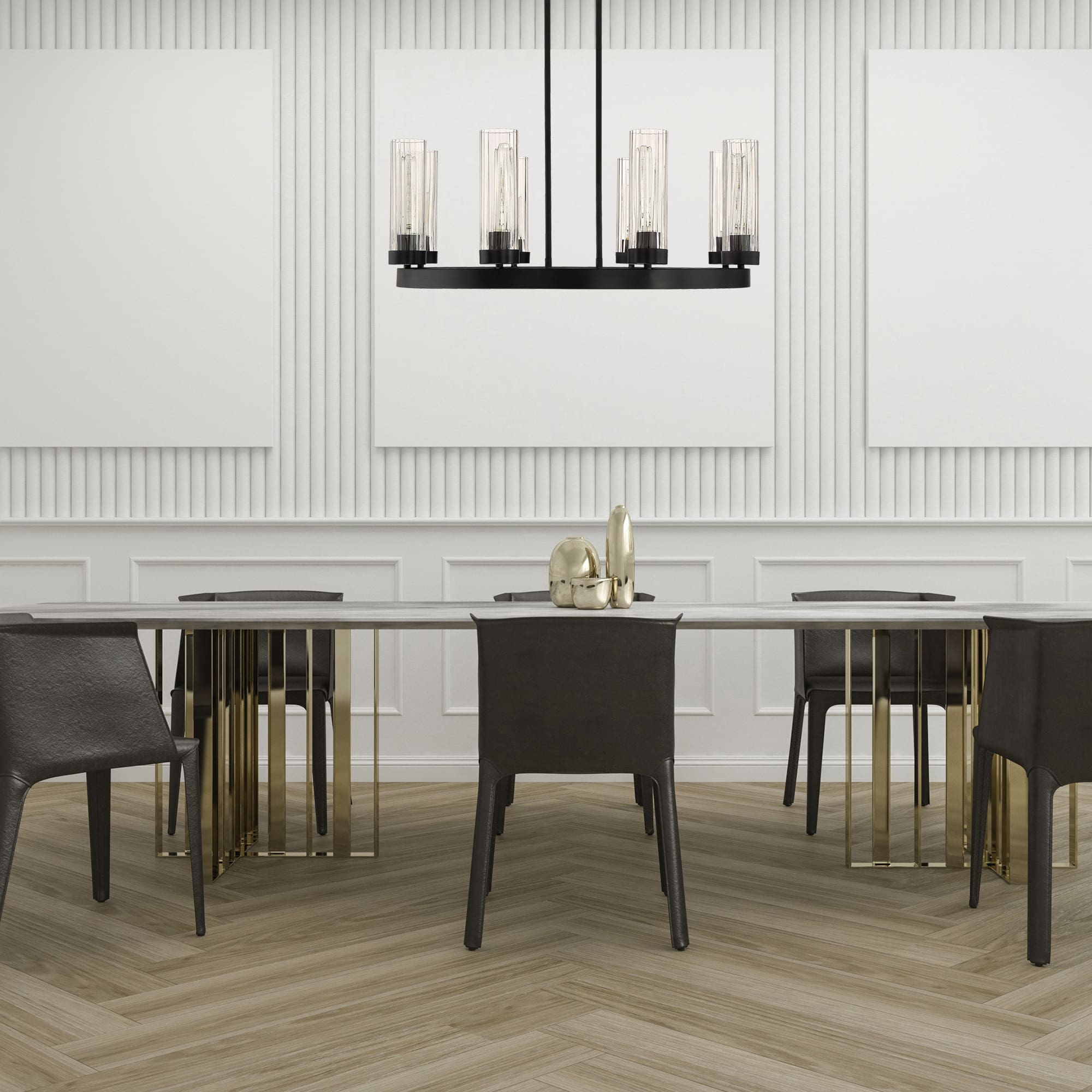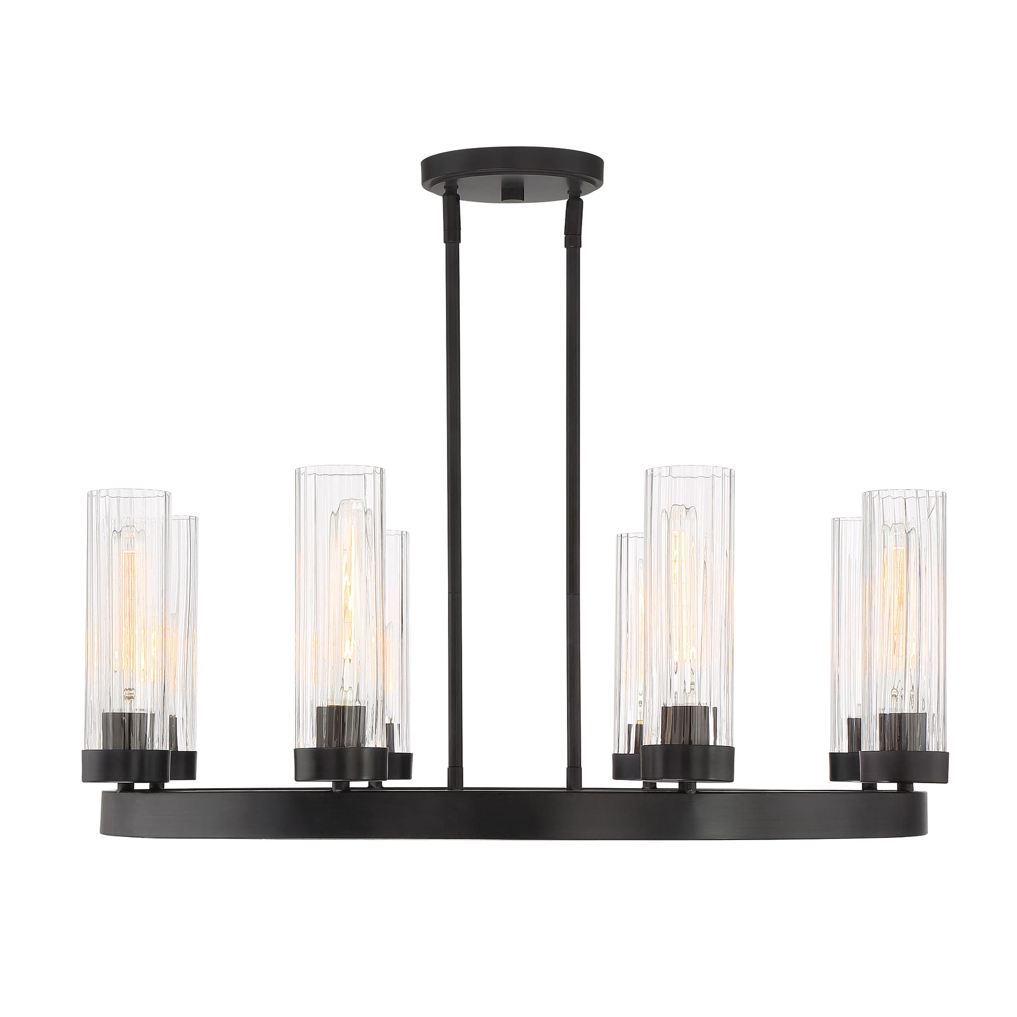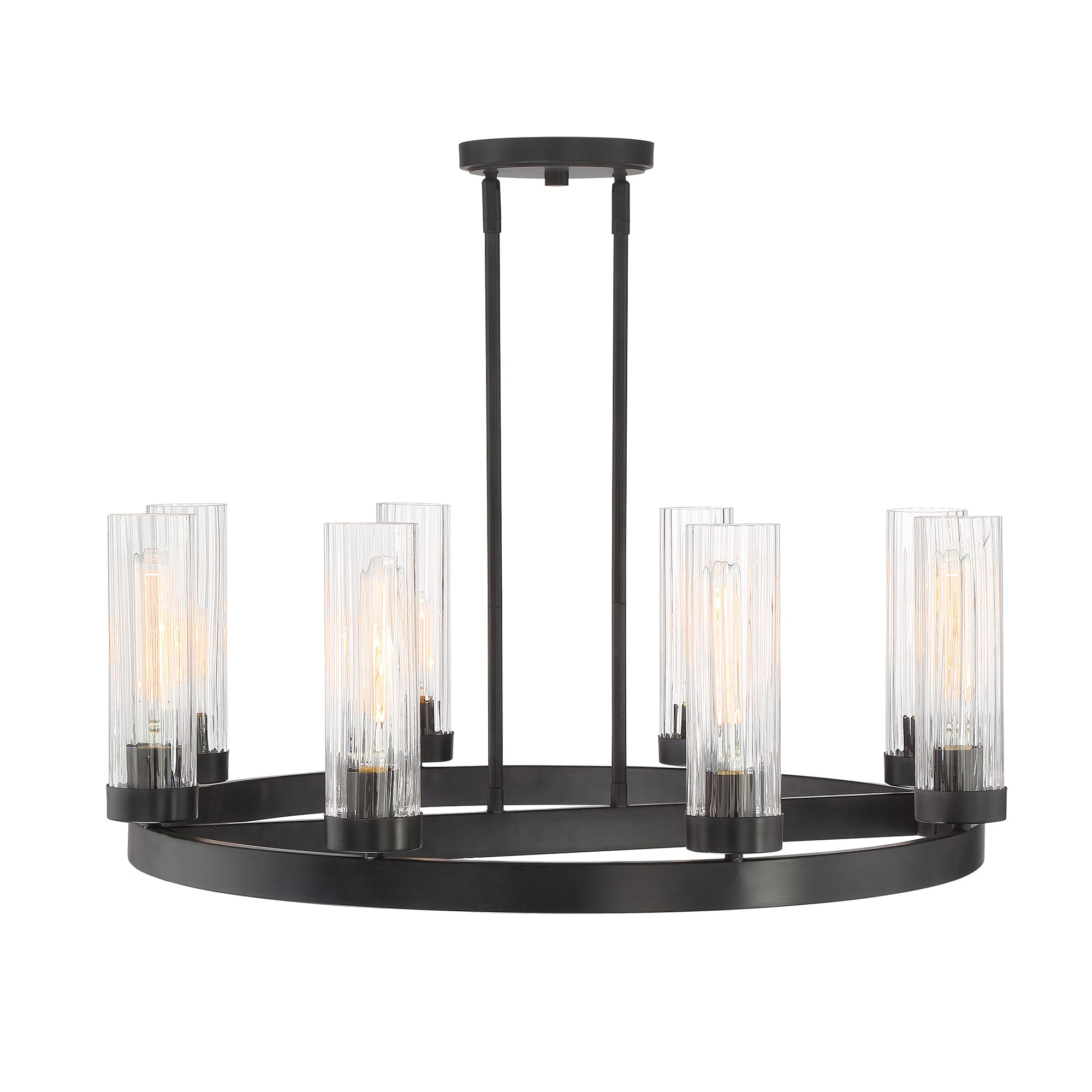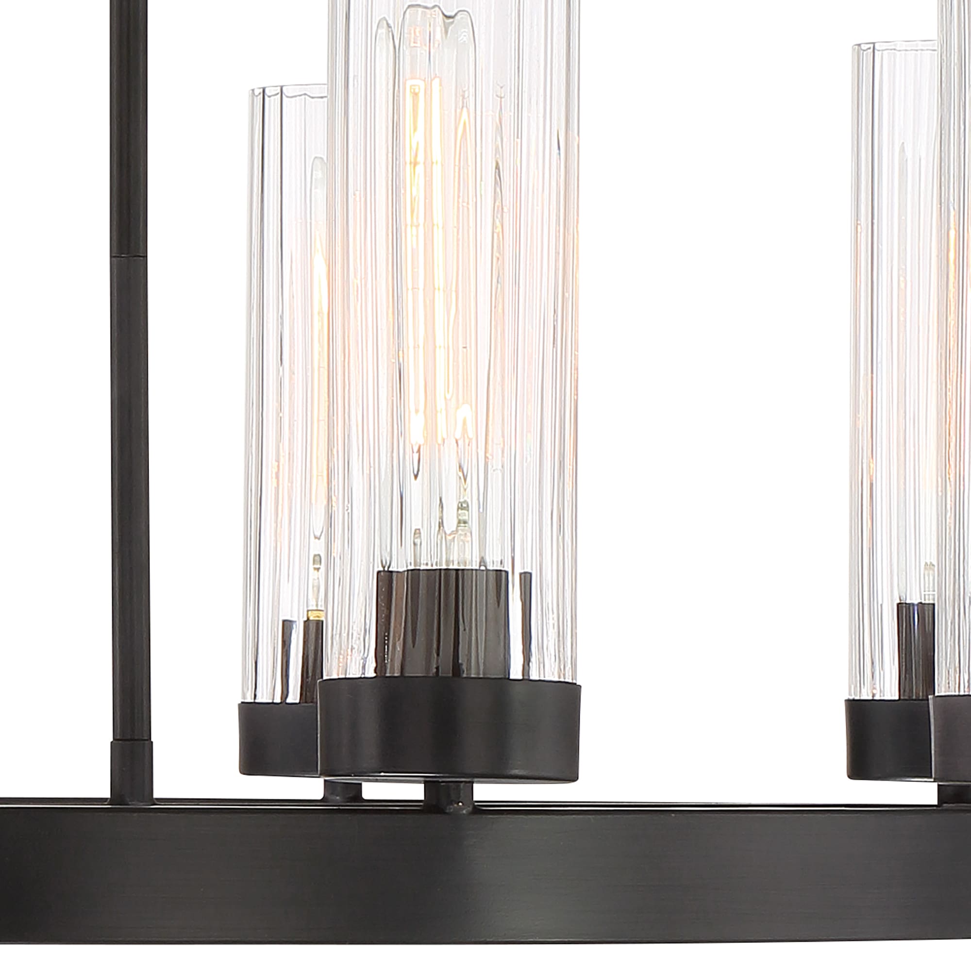 • Modern chandelier in Iron Graphite with Clear Striated Glass shades
