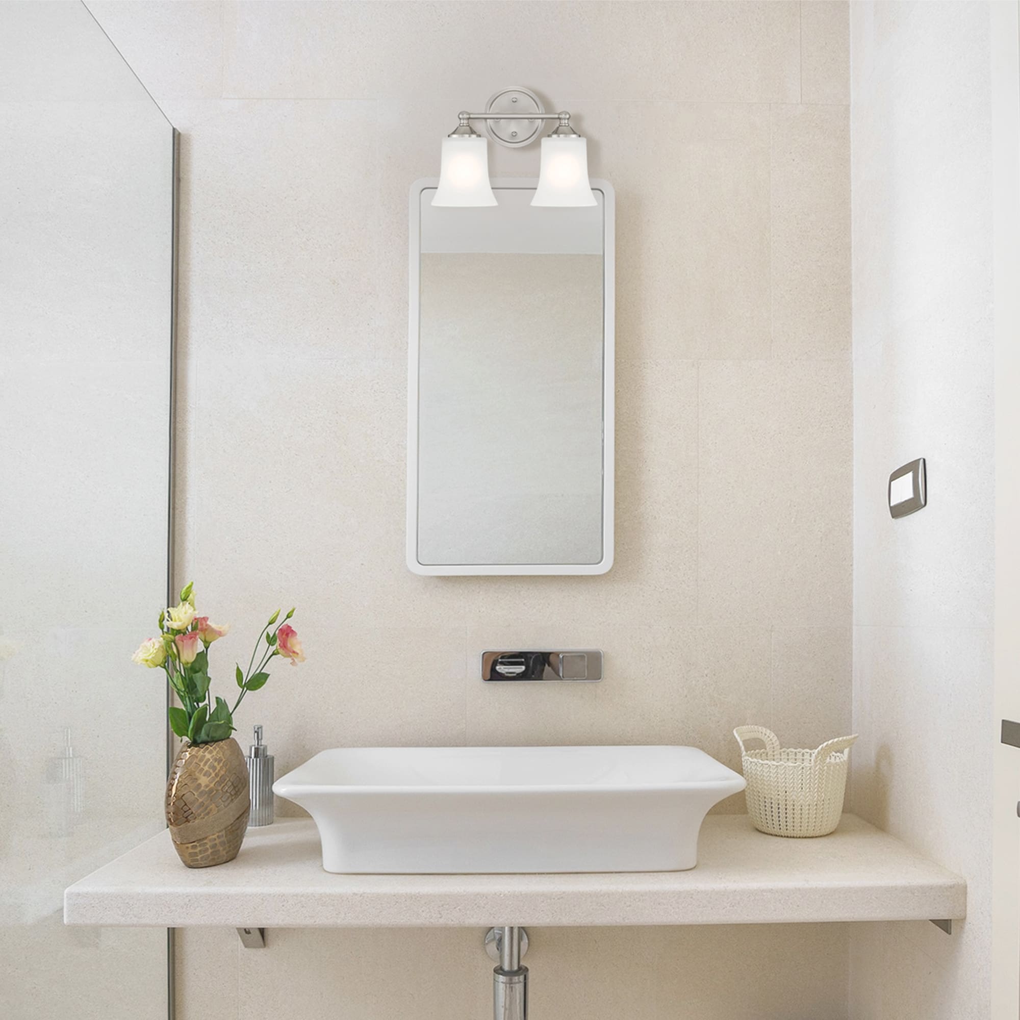 • Uses 2 medium-base 60W max bulbs (not included)