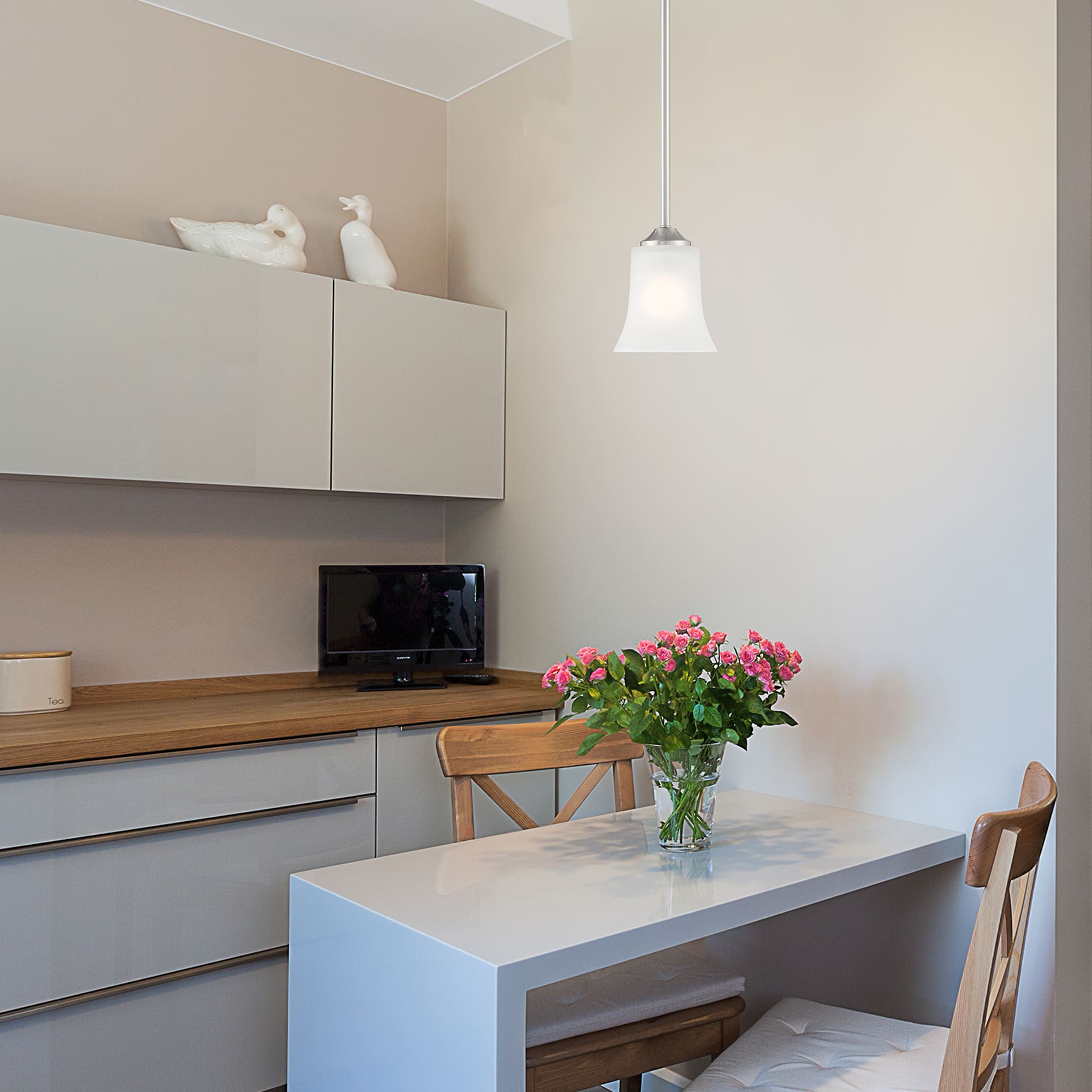• Transitional pendant is great for living rooms, foyers, dining areas, and small-to-medium-sized rooms