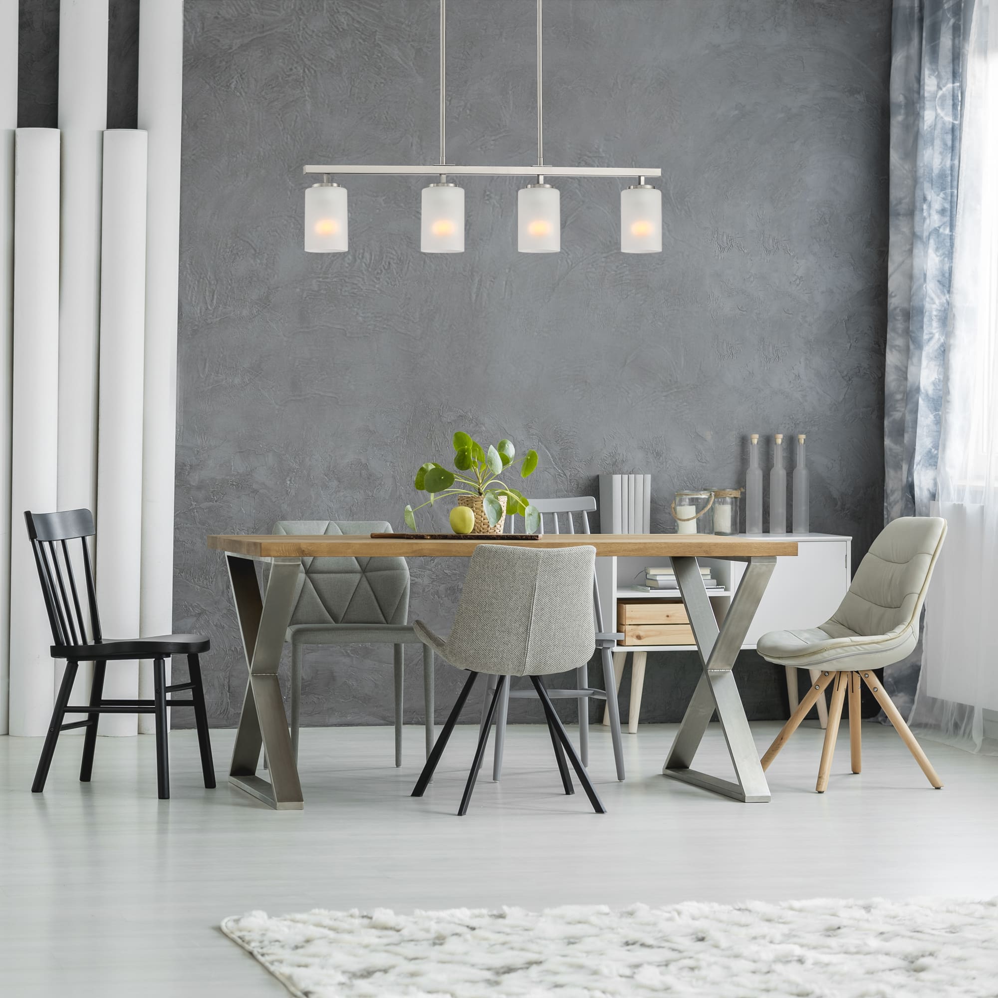 • Contemporary island is great for dining rooms, large kitchen islands, or other areas where you need a lot of overhead light