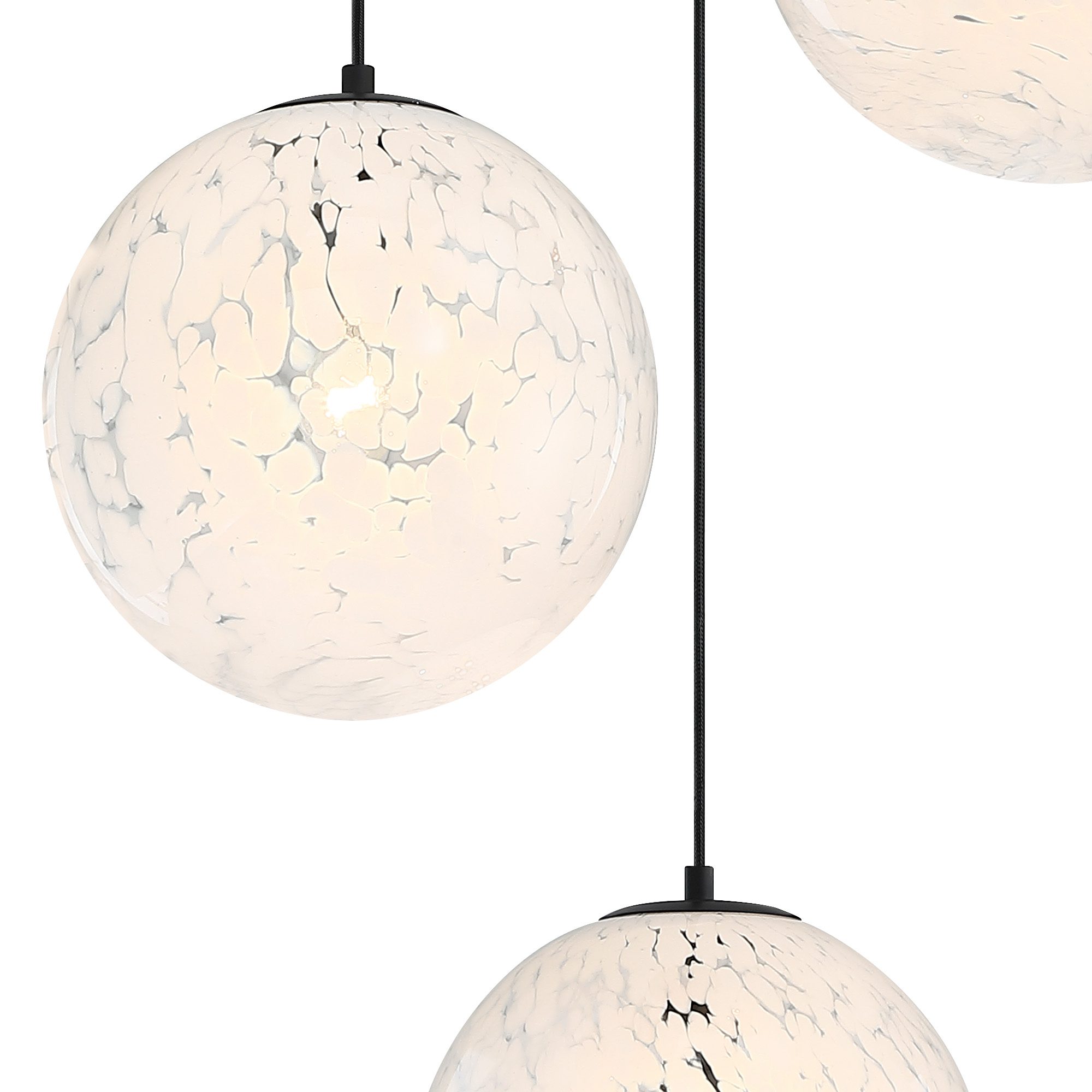 • Modern ceiling-mounted light features (3) 12 in. white art glass shades