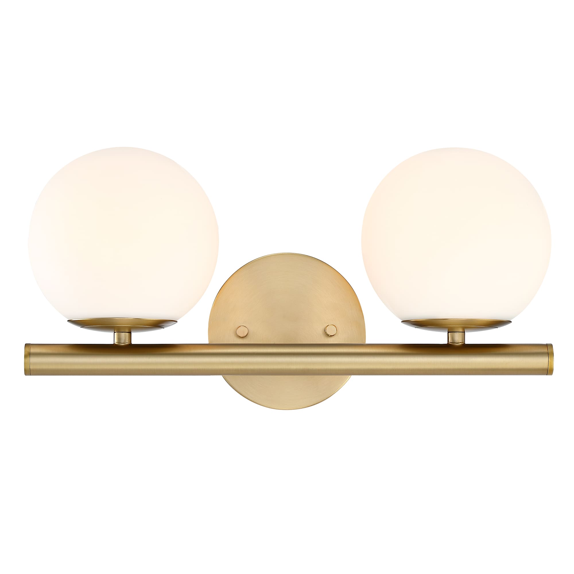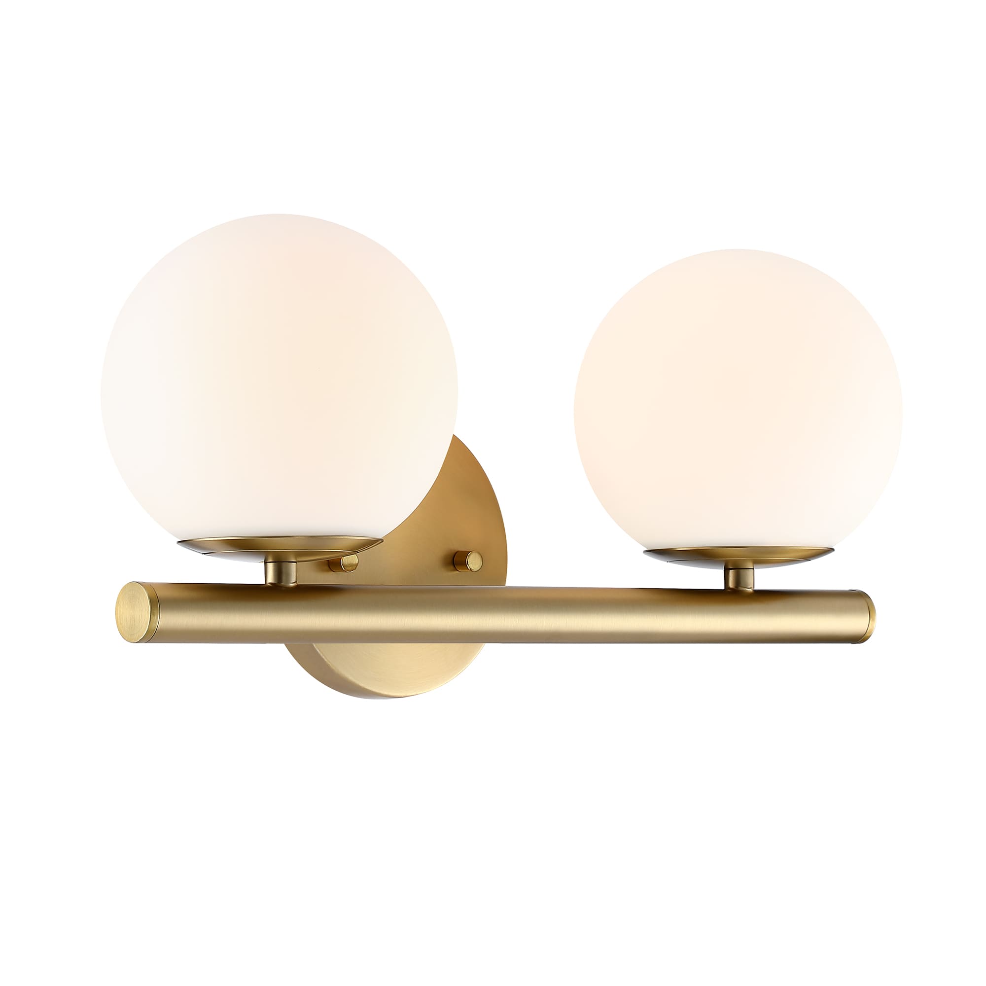 • Modern brushed gold bath vanity with etched opal glass shades