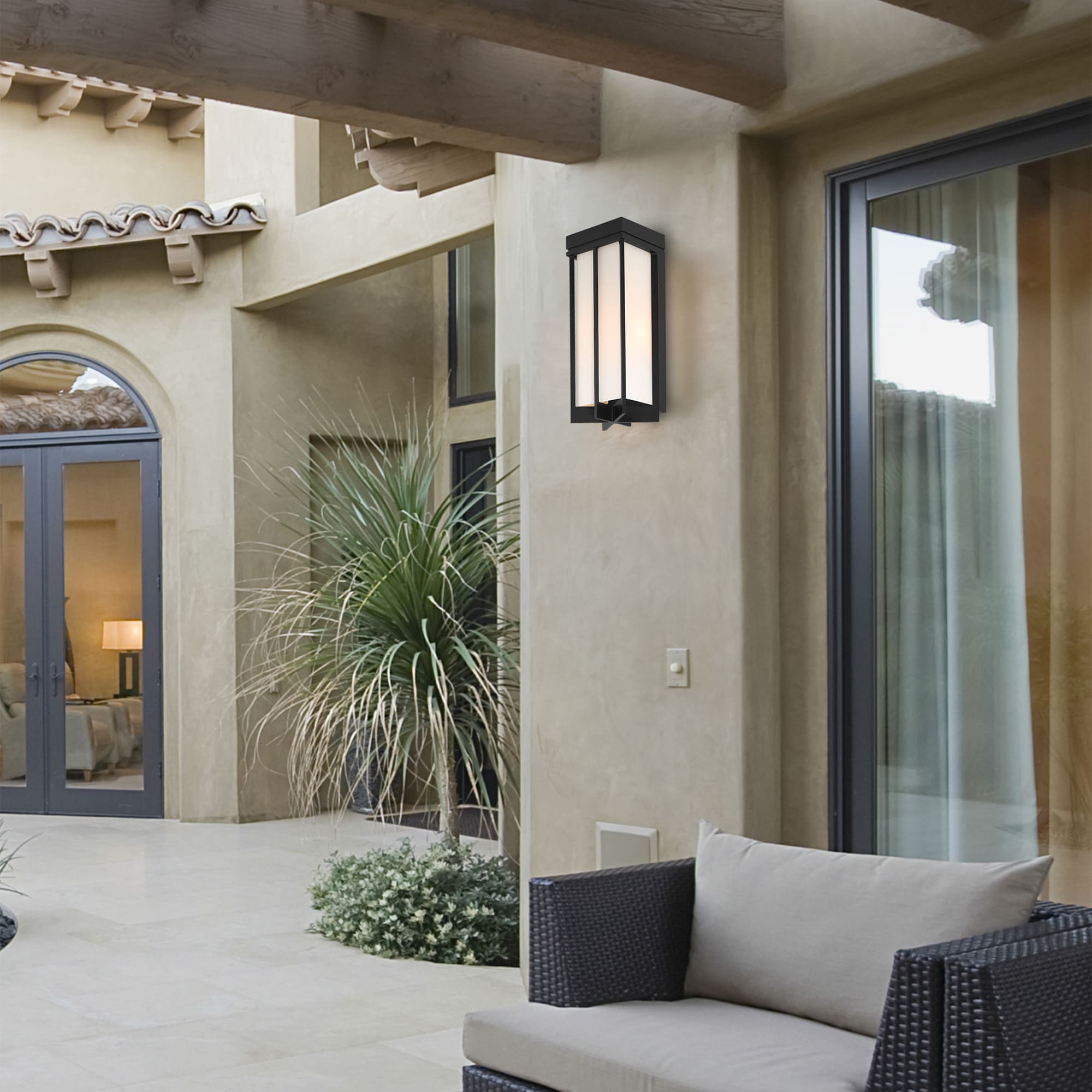 • Etched White Glass shade for evenly-distributed outdoor light
