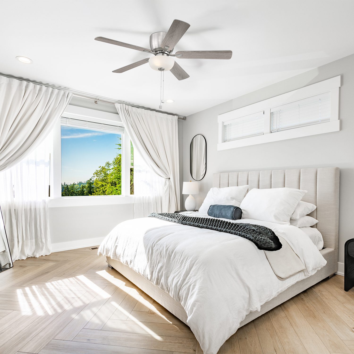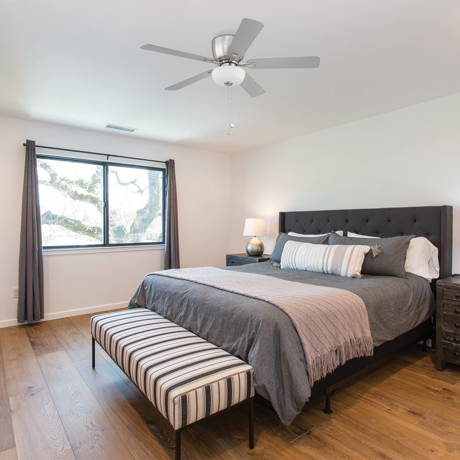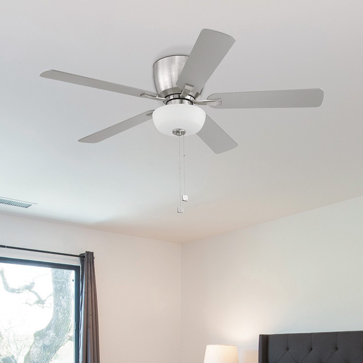 • Pull-chains control fan speed and light activation