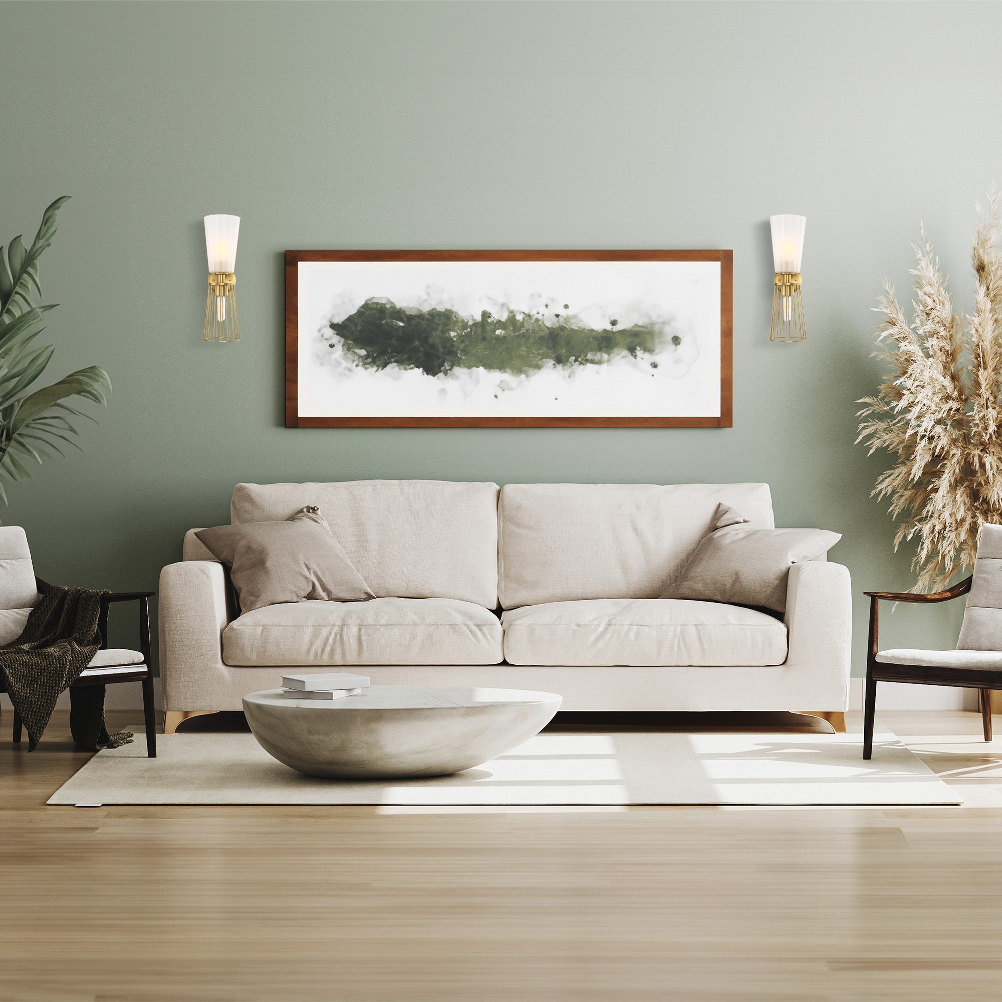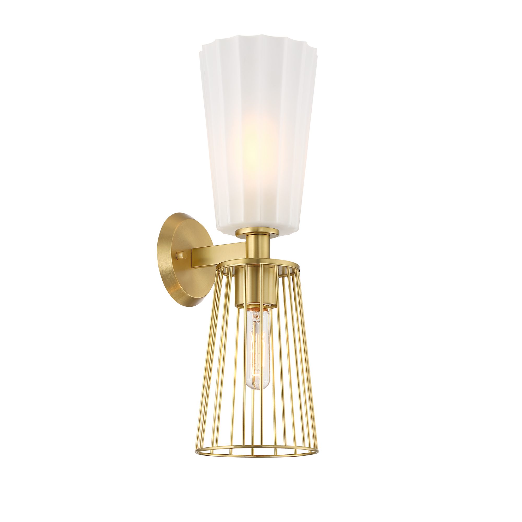 • Glam and retro-modern brushed gold wall-mounted light fixture