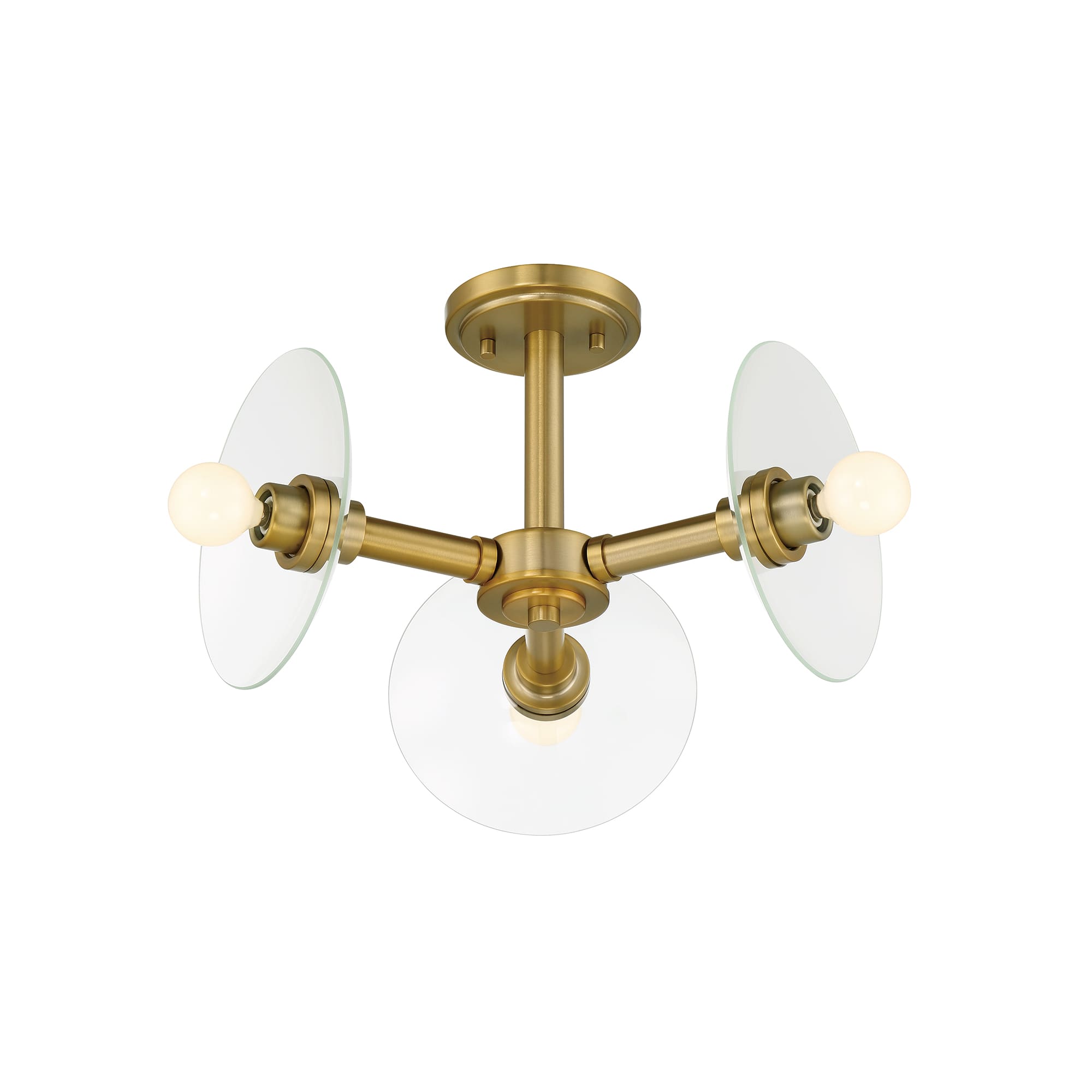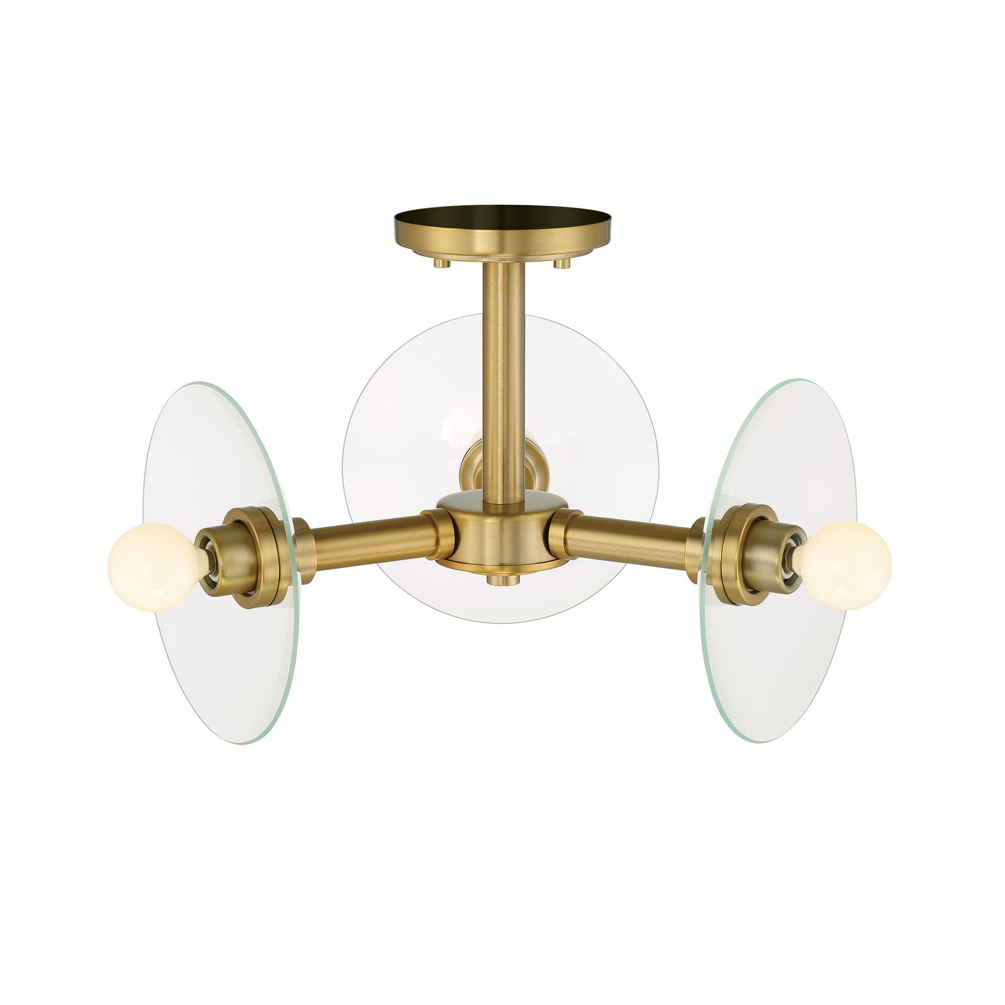 • Modern semi-flush in Brushed Gold with Clear Glass shields