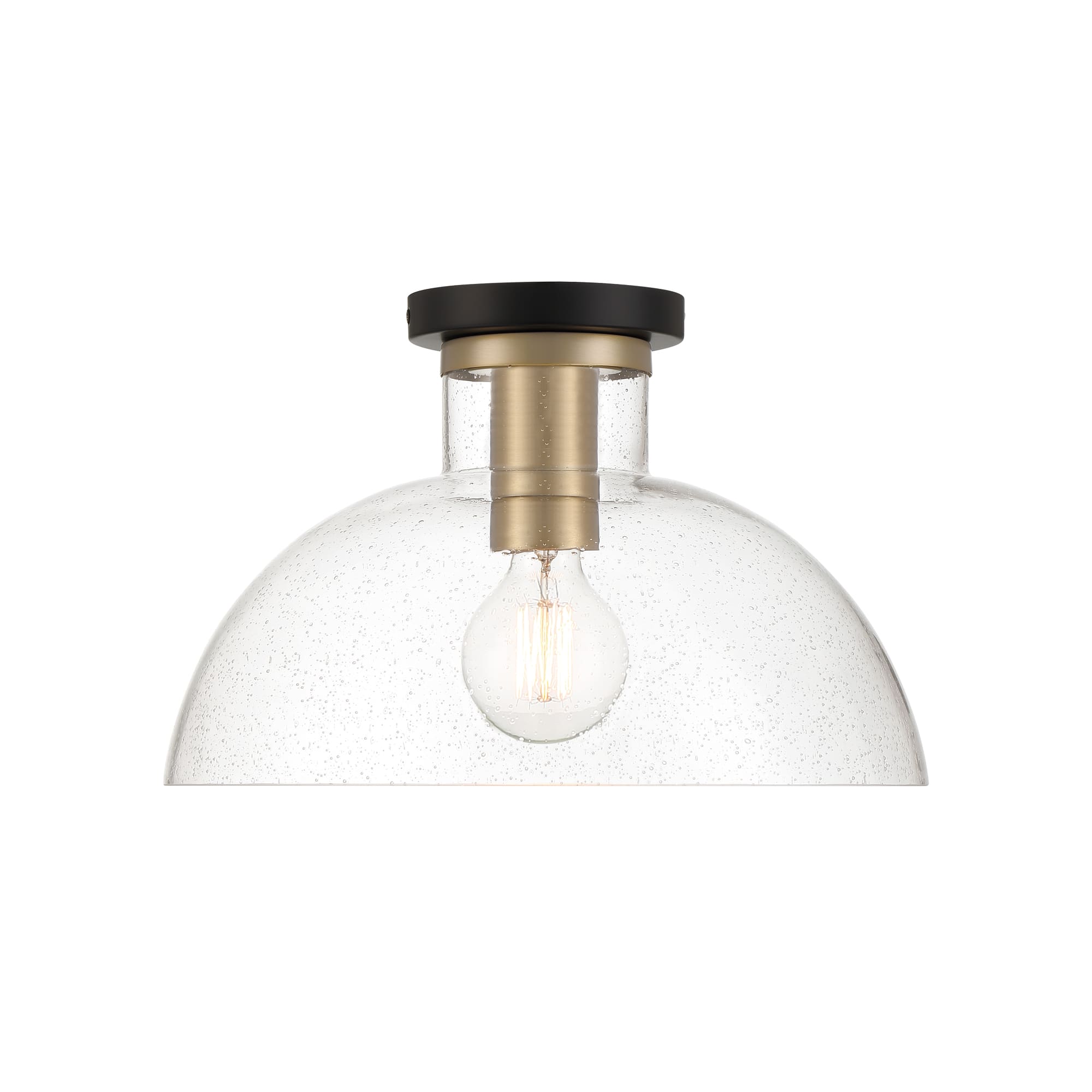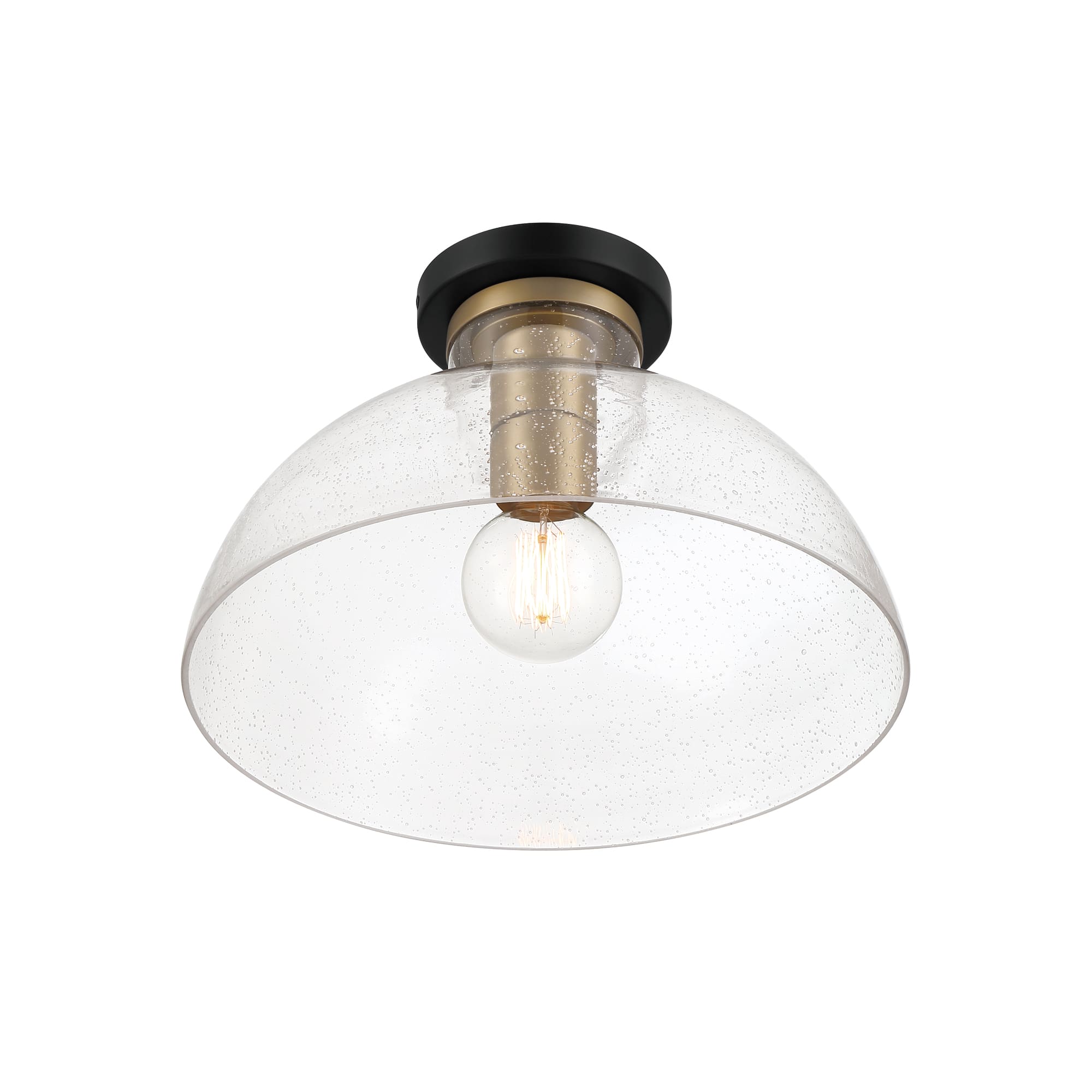 • Modern semi-flush in Matte Black with a Clear Seedy Glass shade