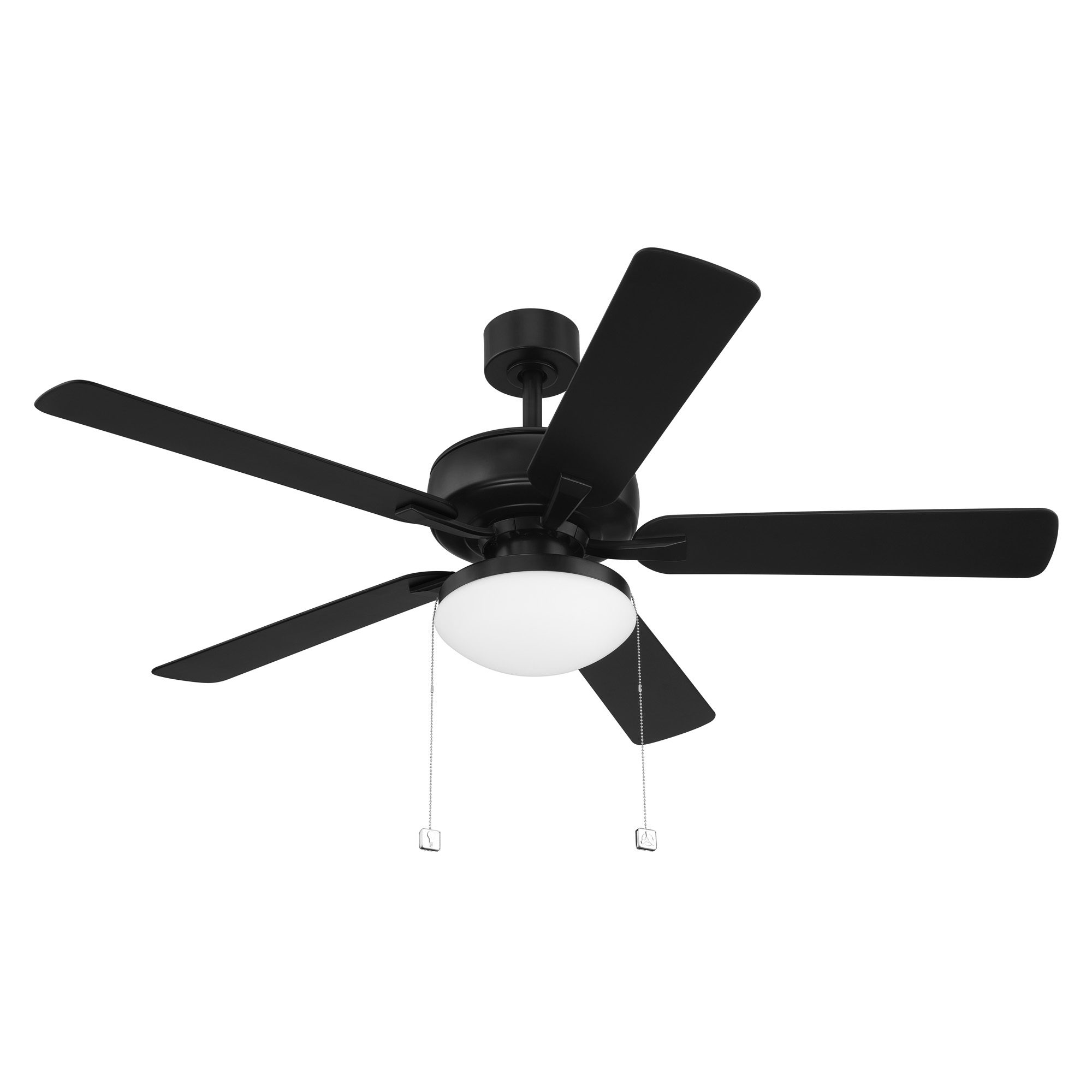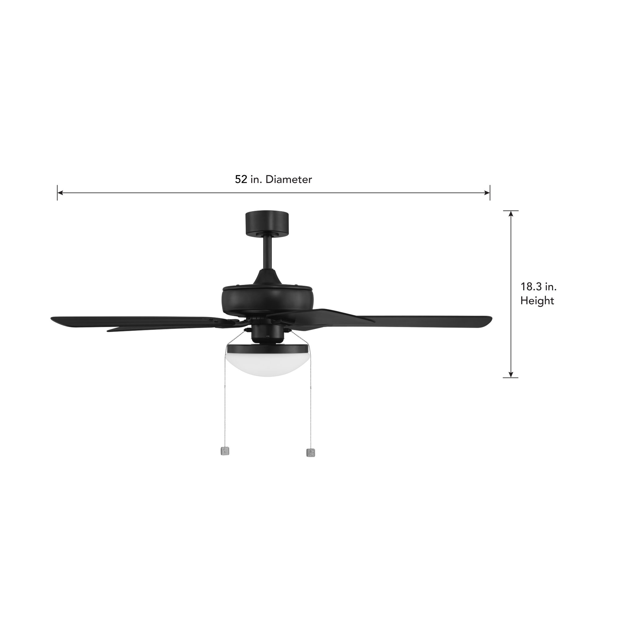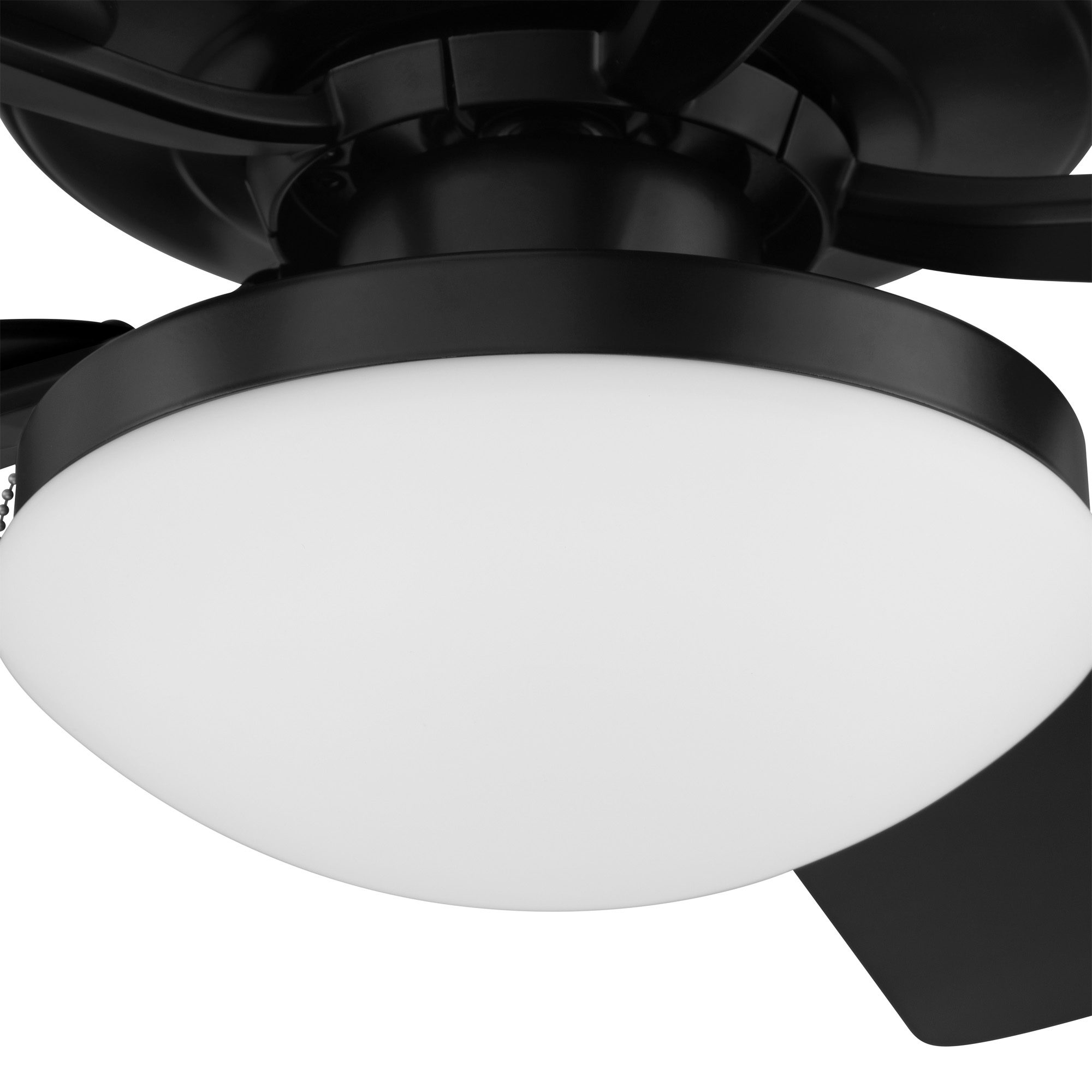 • Transitional matte black ceiling fan for indoor and outdoor use