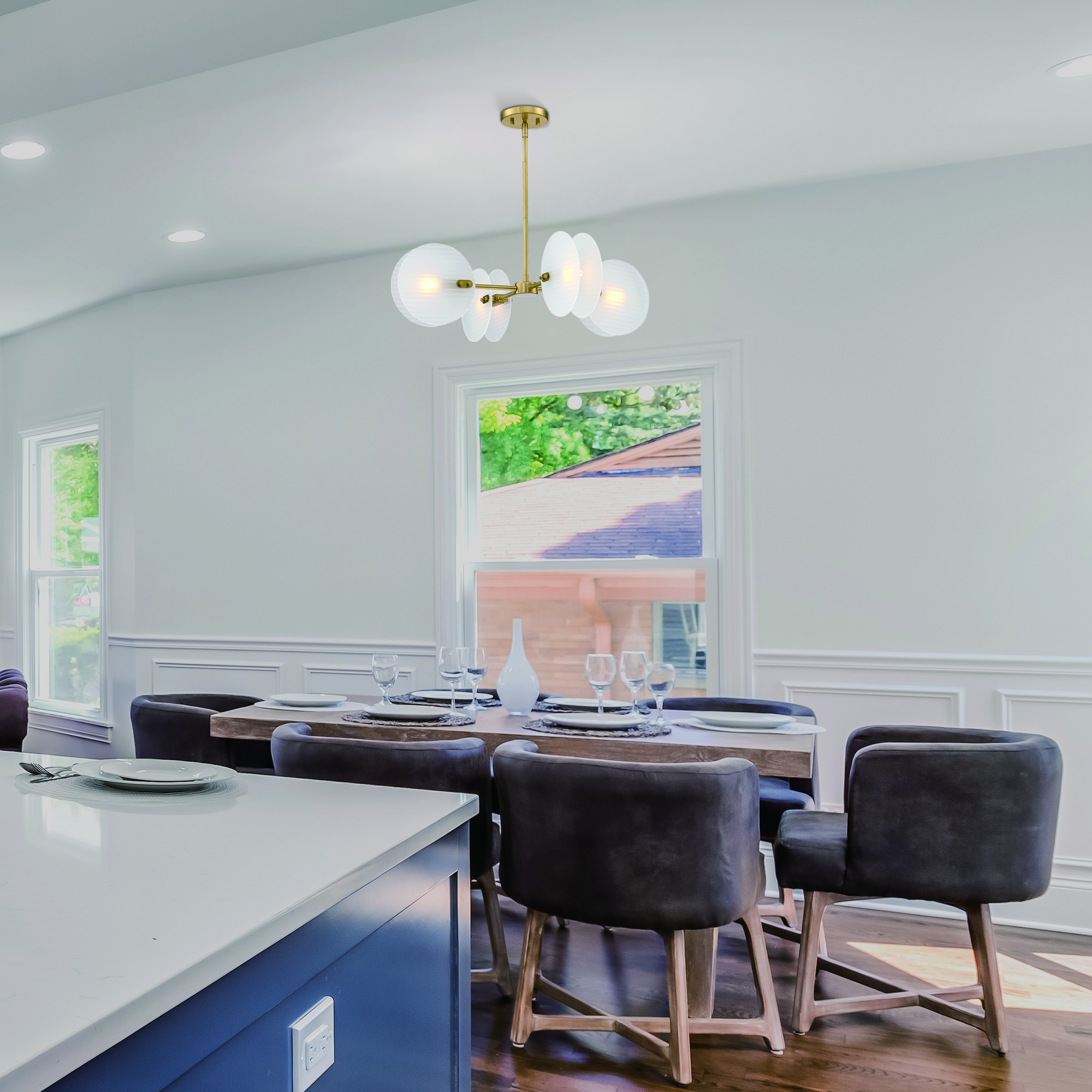 • Etched fluted glass shades for a more diffuse light