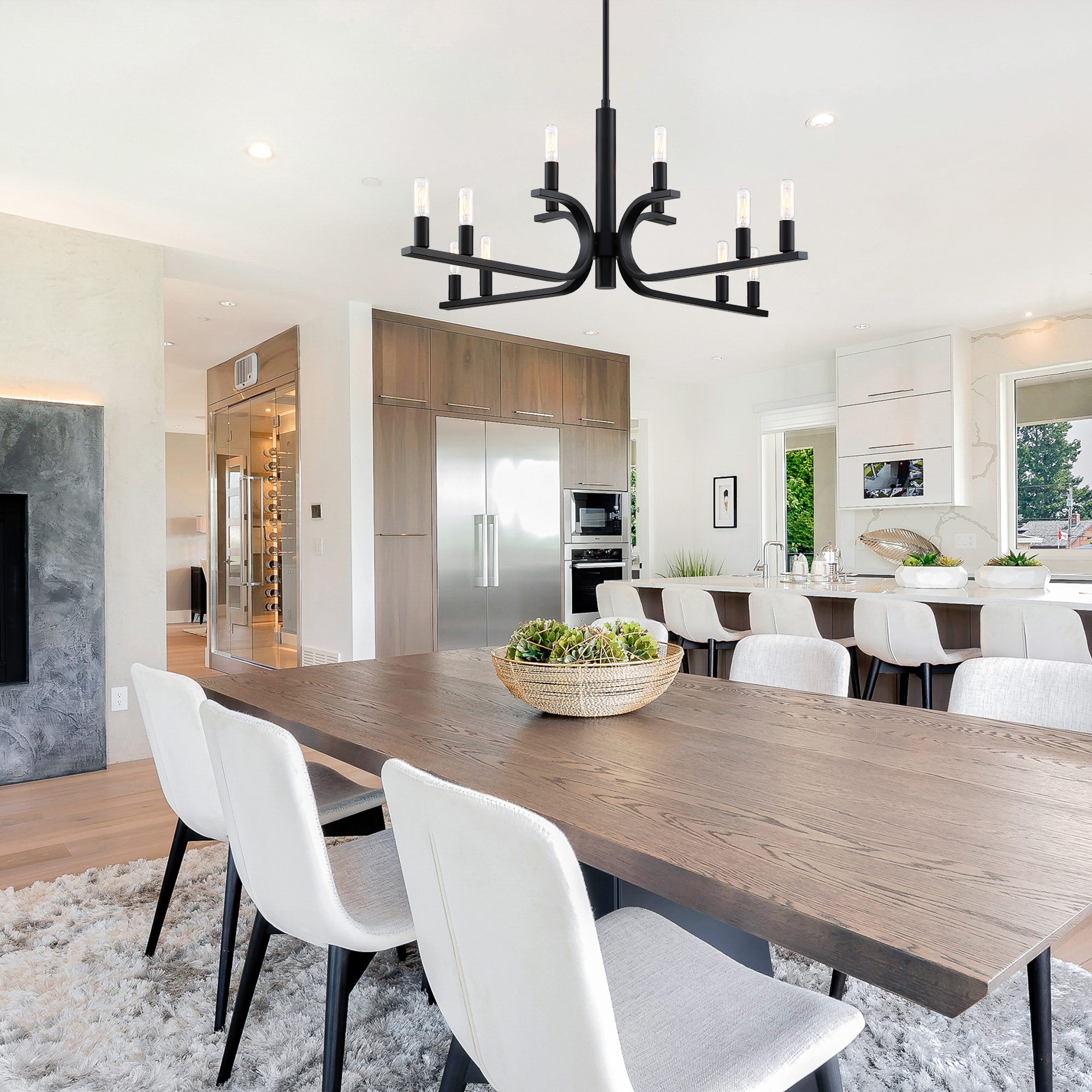 • Minimalist matte black hanging chandelier light fixture