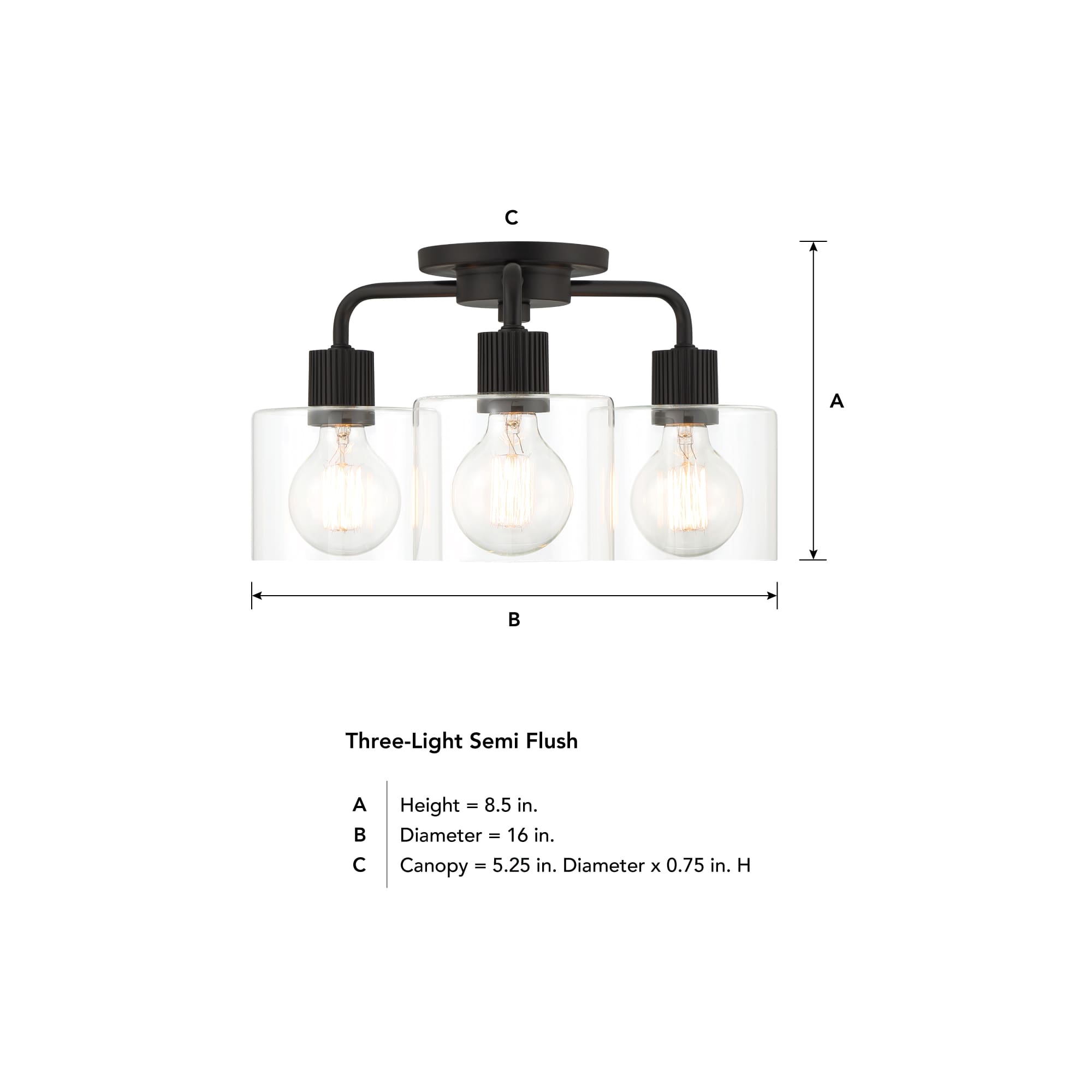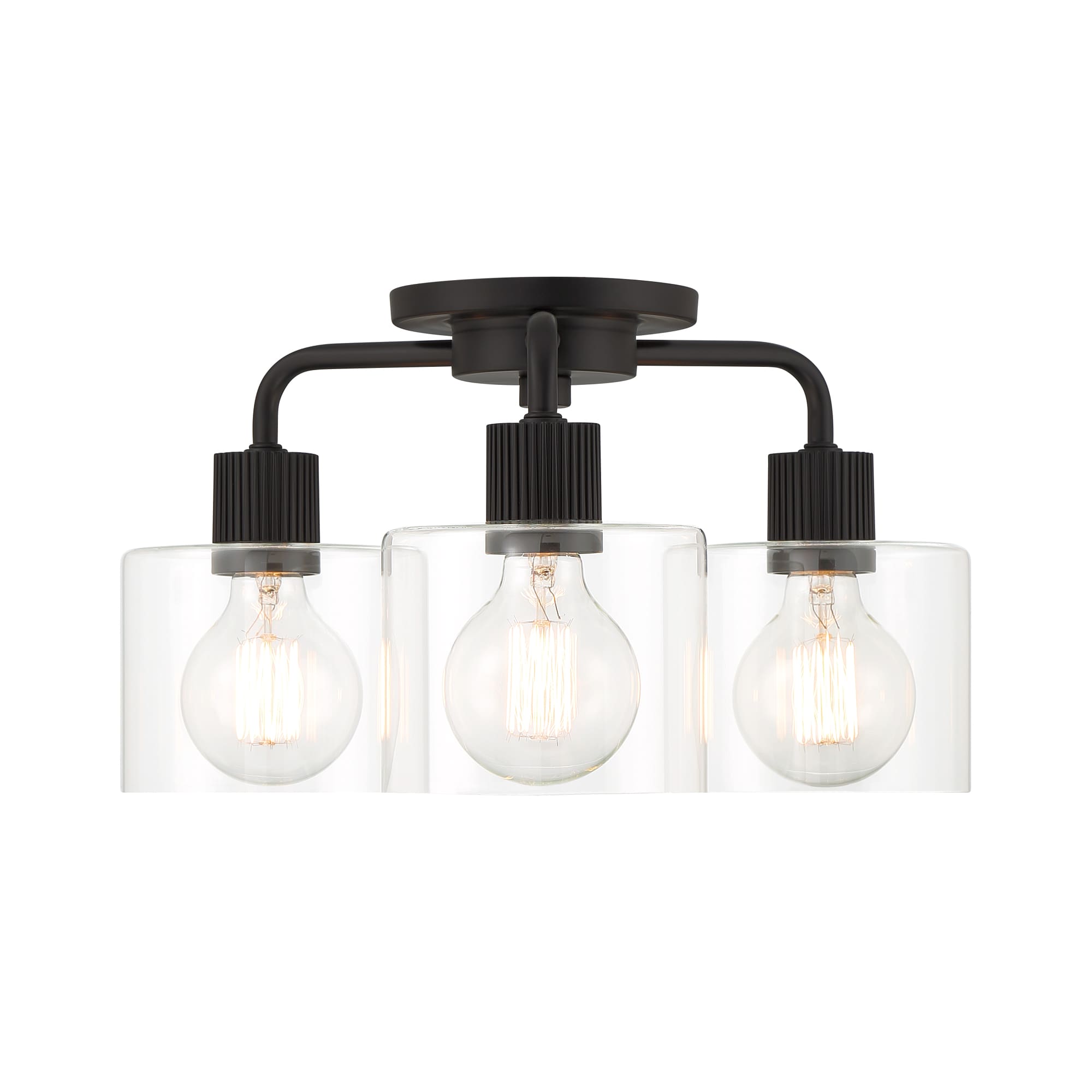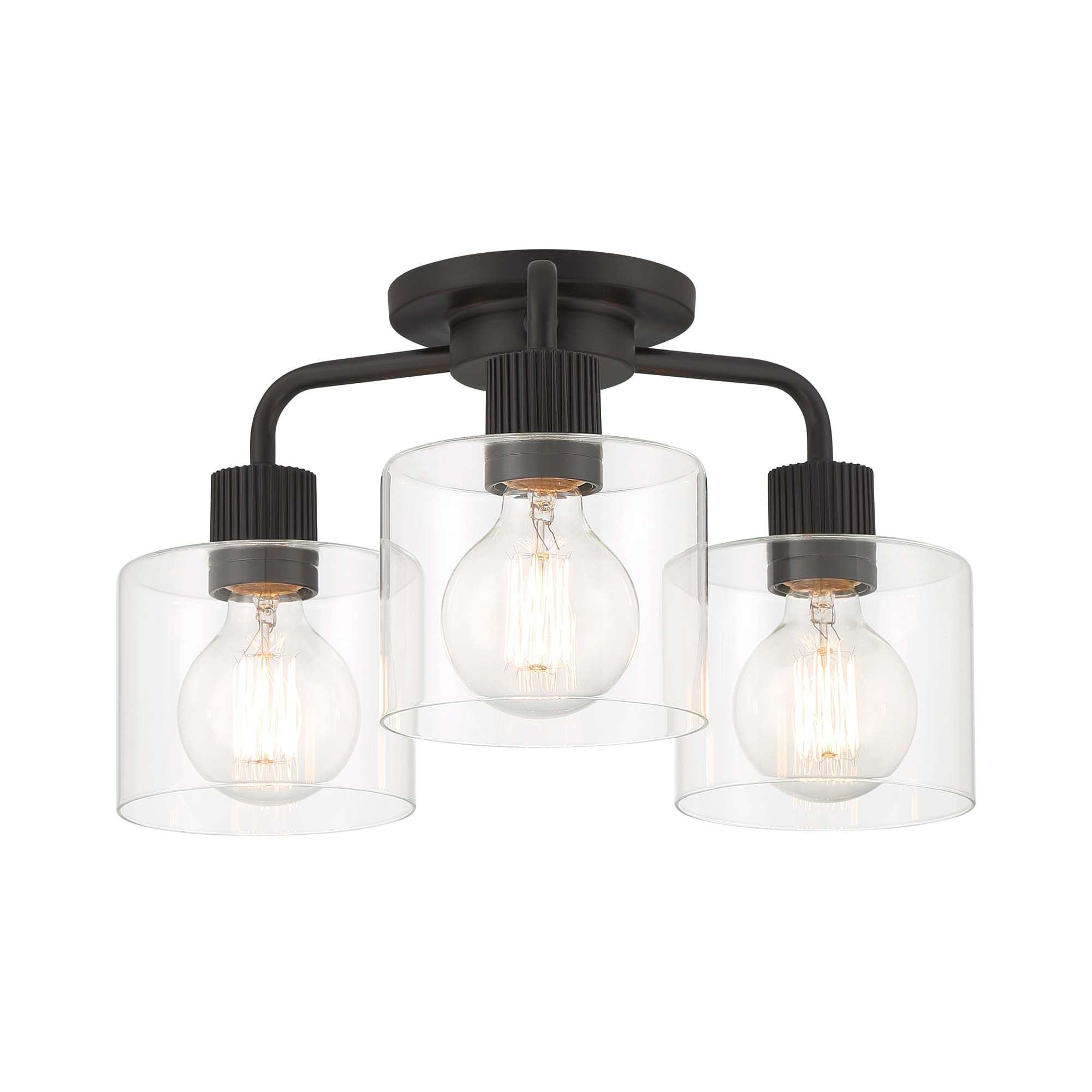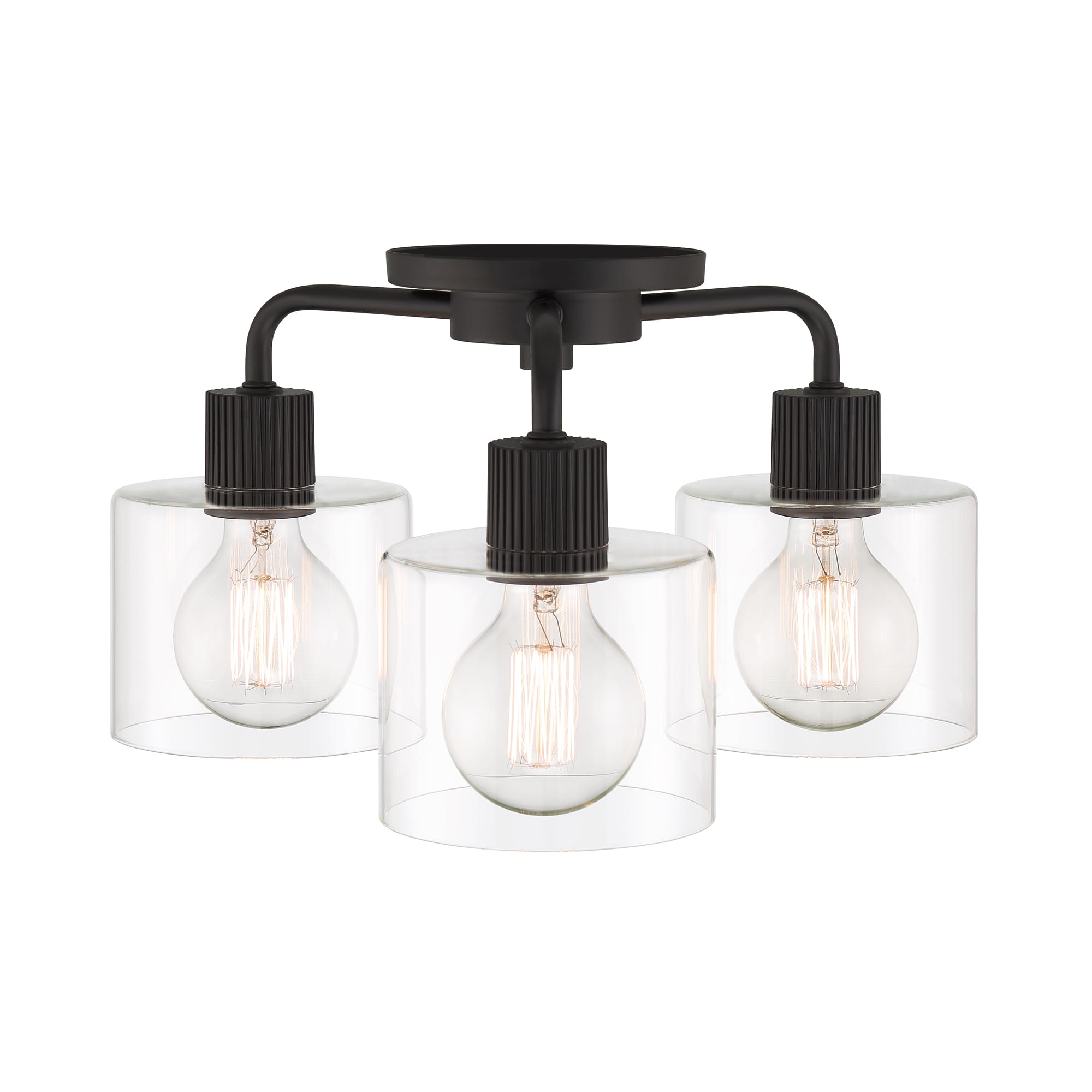 • Transitional semi-flush in Matte Black with Clear Glass shades