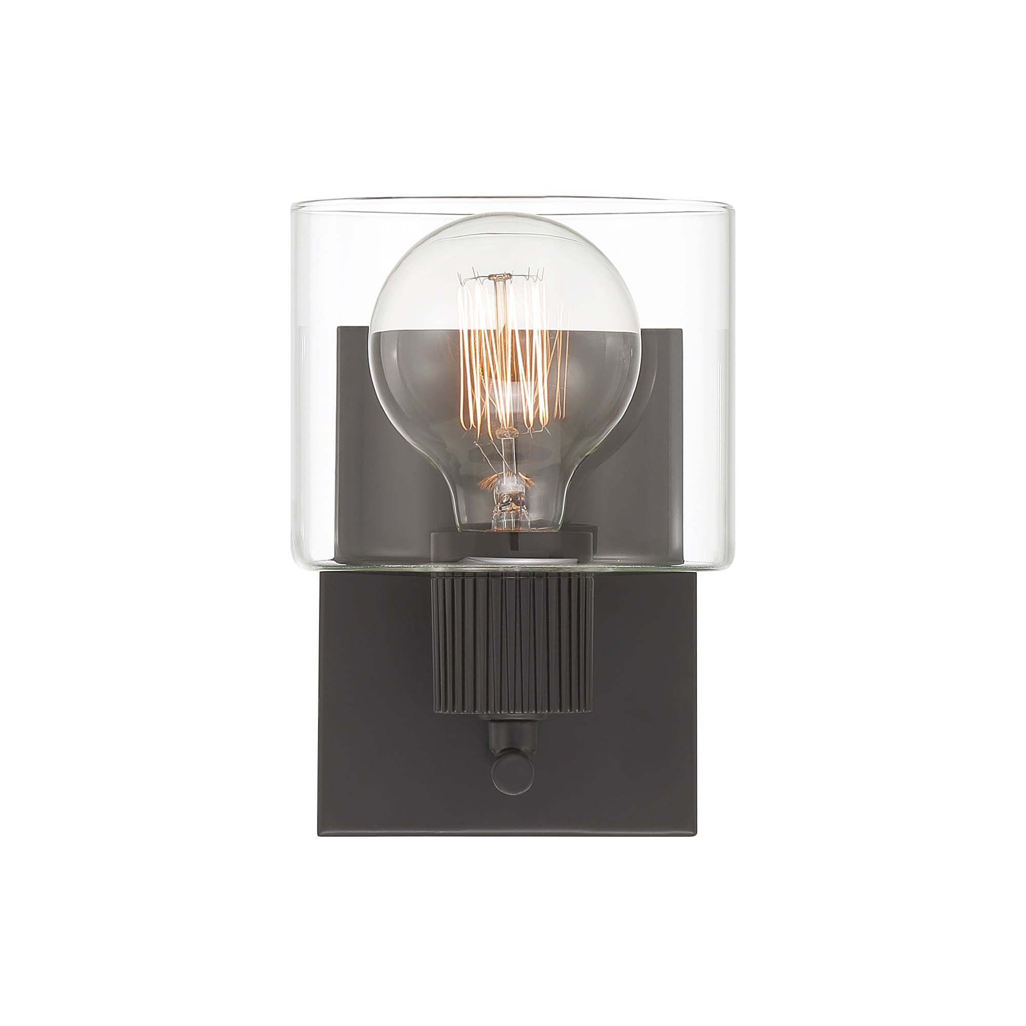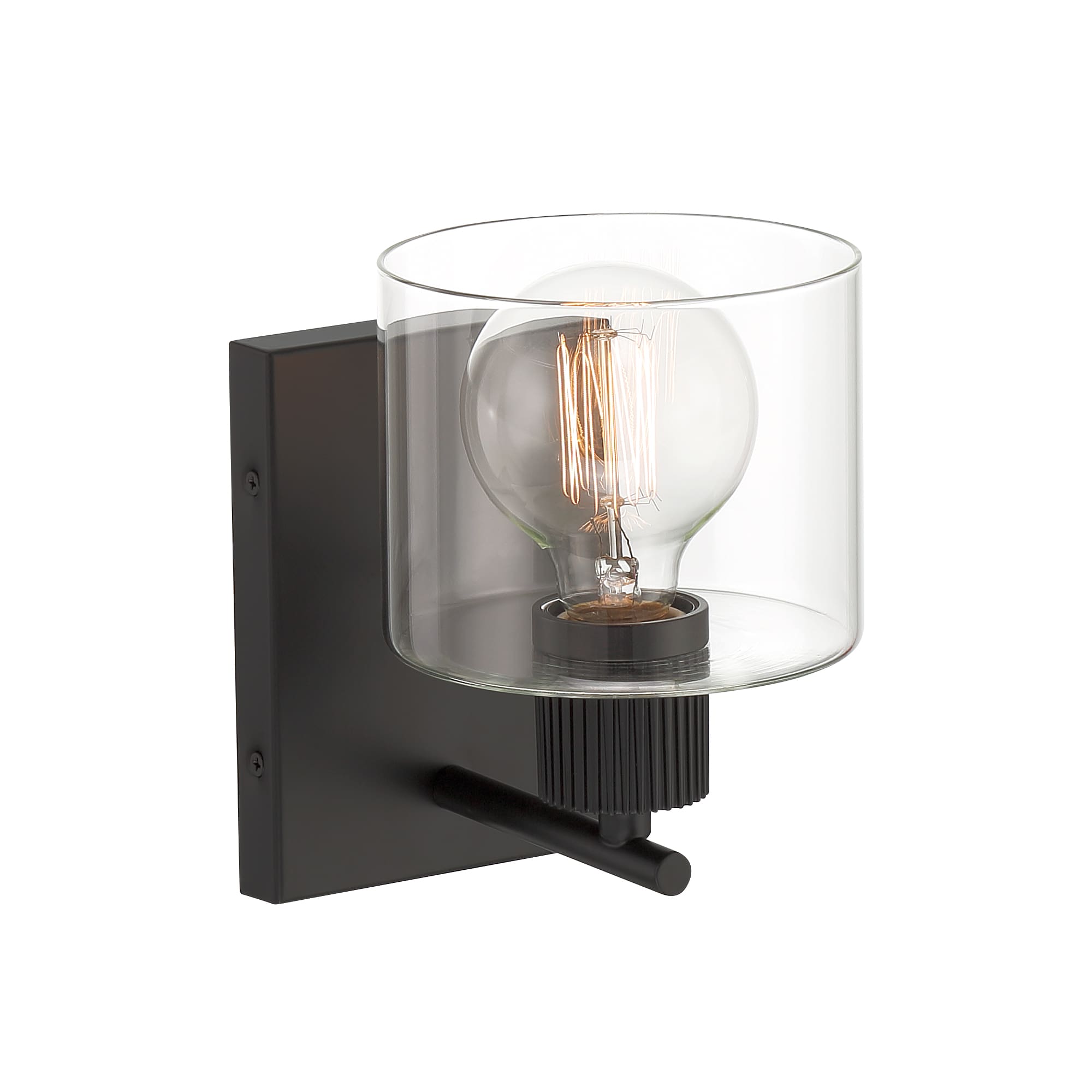 • Transitional wall sconce in Matte Black with a Clear Glass shade